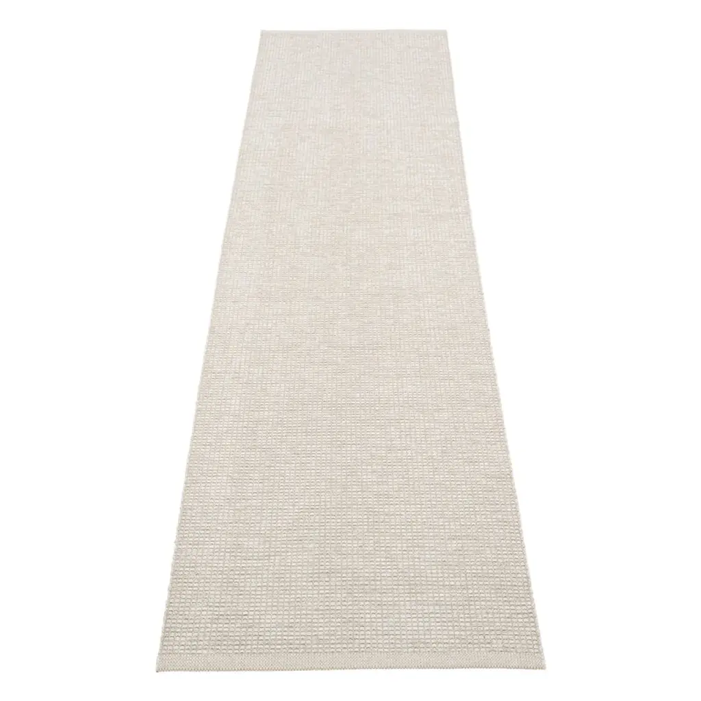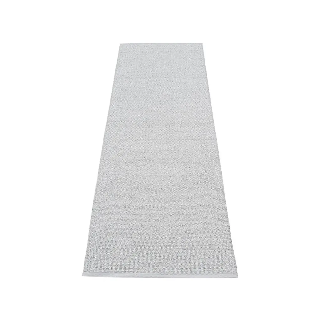 The Svea plastic rugs from Pappelina are woven on a traditional loom in Dalarna, Sweden. Made of phthalate-free PVC ribbon, the rugs are durable and easy to care for, and their two-colored metallic shades are perfect for modern interiors. The Svea rug can easily be put to use as a hallway rug, kitchen area rug or outdoor rug. The Svea rugs come with an embossed logo on both ends.