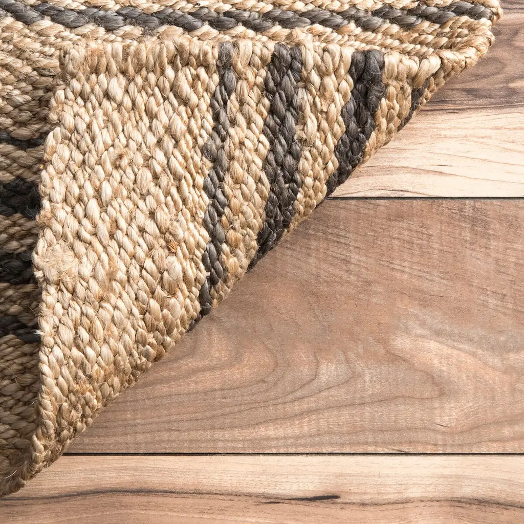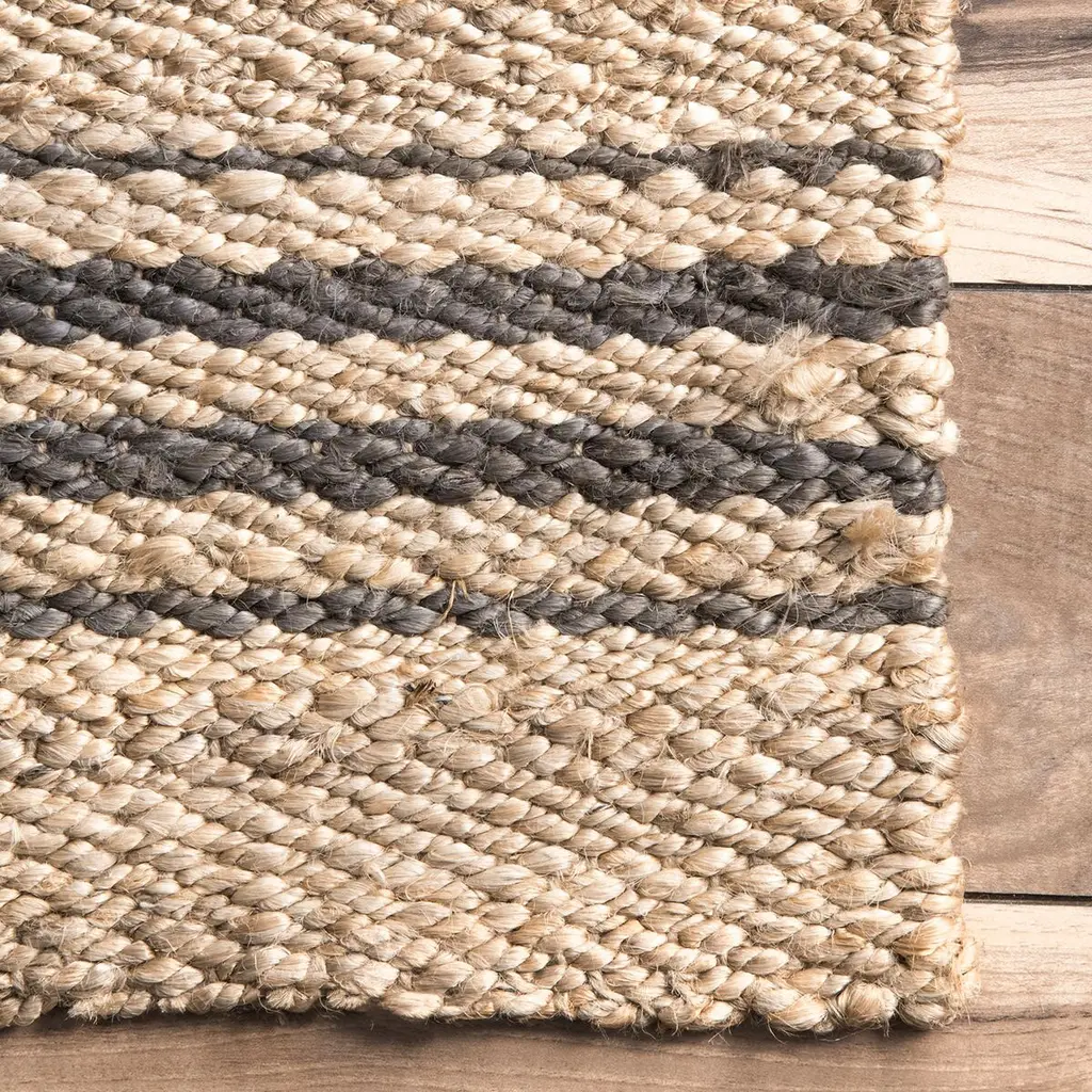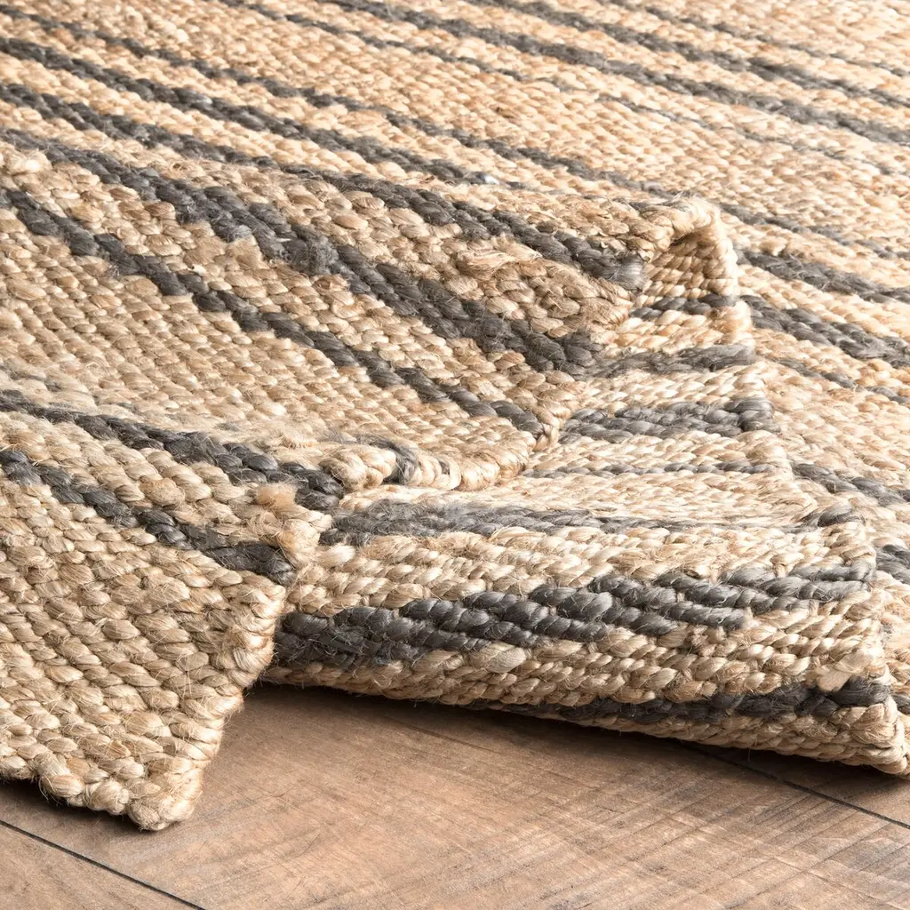This striped rug was handcrafted of eco-friendly jute, the softest of the natural fibers commonly used for floor coverings. Variations in the natural neutral tones give the rug an inviting sophistication and depth. A rug pad is recommended to help prevent slipping.