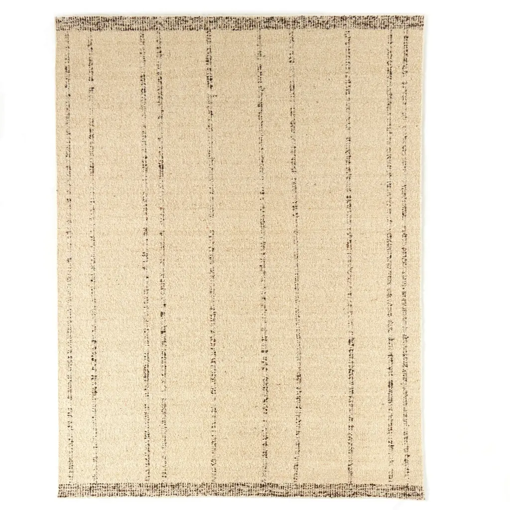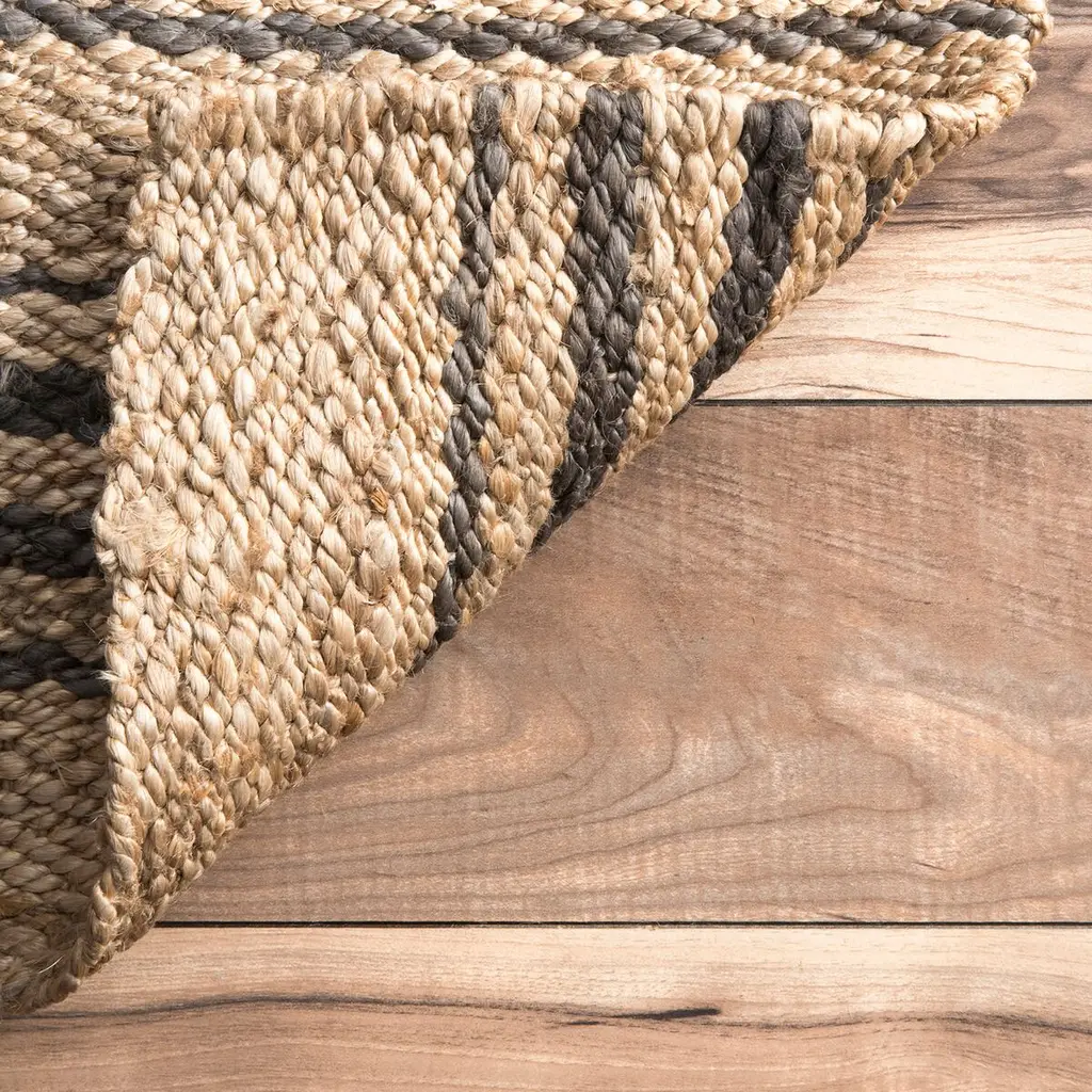 This striped rug was handcrafted of eco-friendly jute, the softest of the natural fibers commonly used for floor coverings. Variations in the natural neutral tones give the rug an inviting sophistication and depth. A rug pad is recommended to help prevent slipping.
