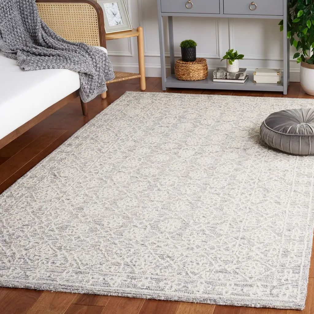 Elevate your living space with the timeless elegance of our Traditional Hand-Tufted Wool Area Rug. Crafted with exceptional attention to detail in size 3' X 5', this small rectangle rug boasts a refined height of 3/8" and is the epitome of classic style and comfort. Exquisite Grey/Ivory Palette: - Our area rug features a sophisticated grey and ivory color scheme that seamlessly blends with a wide range of decor settings. The neutral hues create a serene atmosphere, making this rug a versatile addition to any room. Traditional Style with a Modern Twist: - Inspired by the rich heritage of classic design, this rug showcases a traditional style with a contemporary edge. The intricate patterns present in the rug image depict a tapestry of floral and geometric motifs, speaking volumes of its artisanal roots. Hand-Tufted Wool Craftsmanship: - Meticulously hand-tufted by skilled artisans in India, this rug is made of high-quality wool pile, providing a lush, comfortable feel underfoot. Wool is renowned for its durability, natural resilience against dirt and wear, ensuring that your rug remains beautiful for years to come. Ideal for Any Setting: - Perfect for placement in your living room, bedroom, or study, this 3' X 5' rug adds an element of sophistication to your space without overwhelming it. The cozy size and artistic design make it an excellent choice for small to medium-sized rooms. Enhance your home decor with our beautiful hand-t