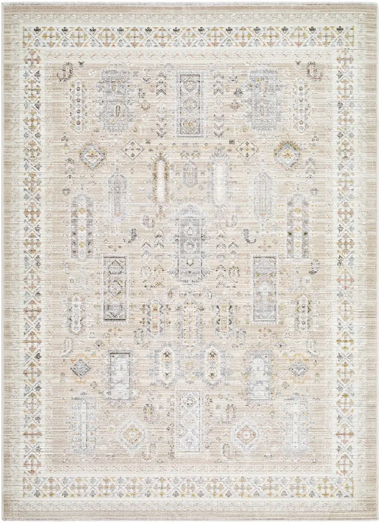 Collection: Syona Colors: Ash, Tan Construction: Machine Woven Material: 100% Polyester Pile: Medium Pile Pile Height: 0.2" Styles: Transitional,Bohemian Made In: Turkey Thickness: 0.3" Fringe Length: 0.51" Price Range: $$$$$ (Affordable)