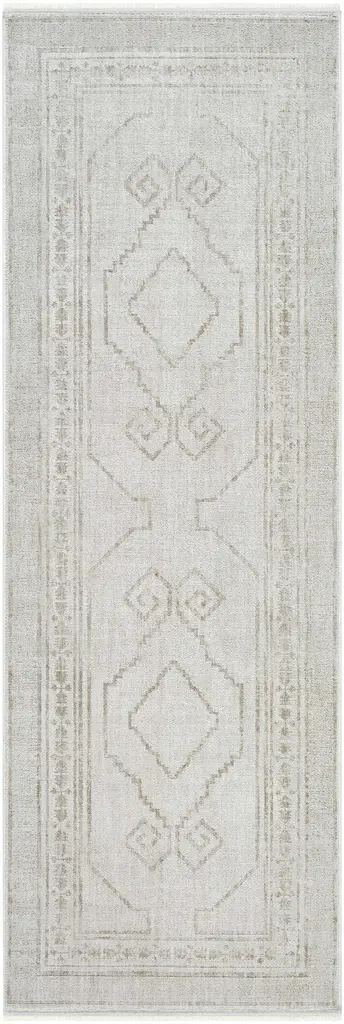 Collection: Taban Colors: Ash, Silver Gray, Light Silver Construction: Machine Woven Material: 100% Polyester Pile: Medium Pile Pile Height: 0.2" Styles: Transitional,Bohemian Made In: Turkey Thickness: 0.3" Fringe Length: 0.51" Price Range: $$$$$ (Affordable)