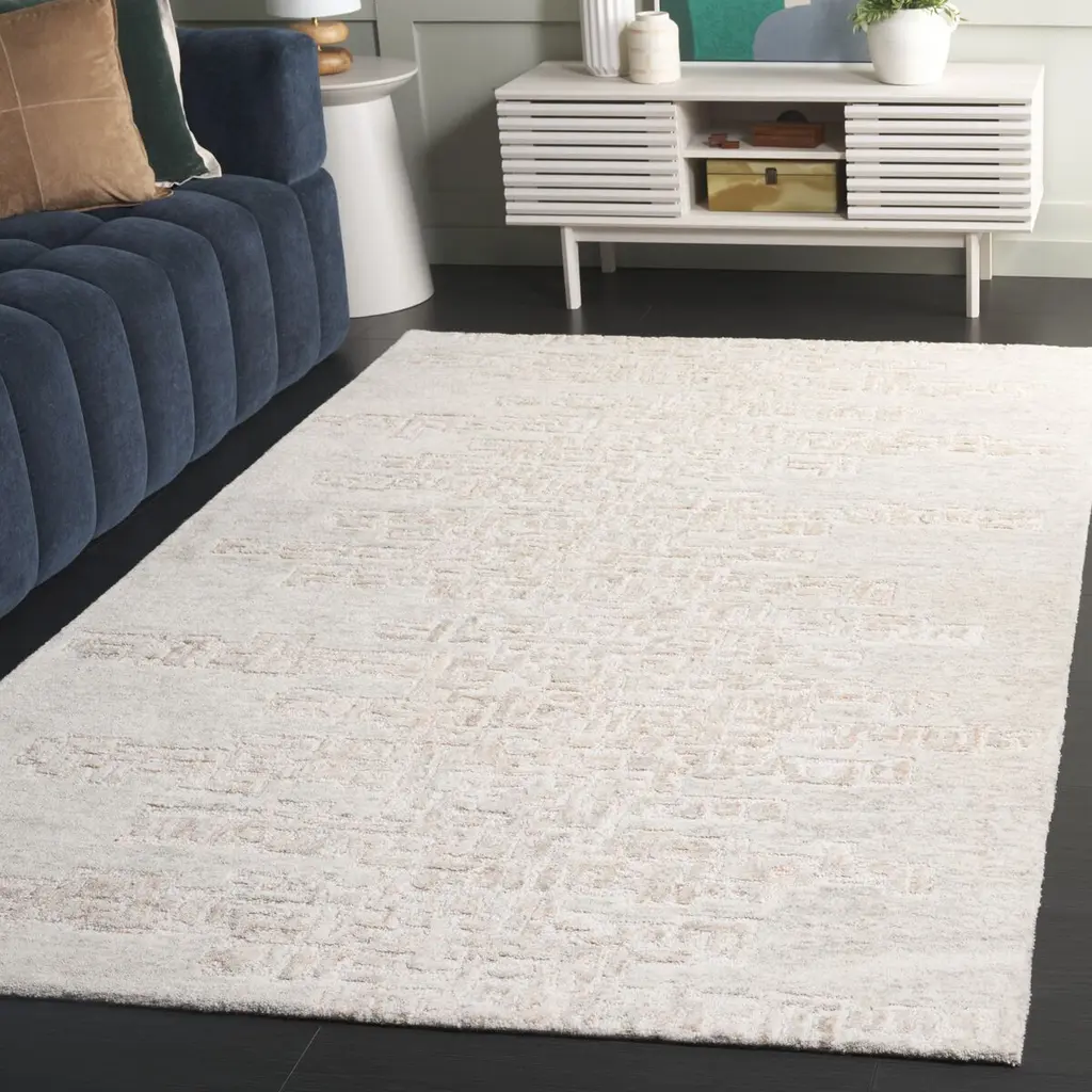 Elevate your space with the timeless elegance of our Hand Tufted Wool Rug, crafted with the utmost care and precision in India. Expertly constructed in a size of 3 feet by 5 feet, this small rectangular area rug fits seamlessly into a variety of rooms, offering both comfort and style. At a height of 3/8 inch, it provides a plush underfoot experience without being too bulky. Our rug is enveloped in charming shades of rust and grey, which form an intriguing abstract pattern that can instantly add character to your interiors. The subtle interplay of colors gives the rug a sophisticated yet understated appeal, making it a versatile choice for decorating. Made exclusively from wool, this rug promises durability and a soft texture that is a pleasure to touch. Hand-tufted by skilled artisans, it reflects a tradition of craftsmanship and quality that can stand the test of time. Whether placed in a living room, bedroom, or study, this wool area rug will infuse your environment with warmth and a hint of traditional artistry from India. Its unique pattern, drawn from the image provided, ensures that while its colors are consistent with the stated palette, each piece boasts a unique expression of its design narrative, offering an exclusive aesthetic to any home decor.