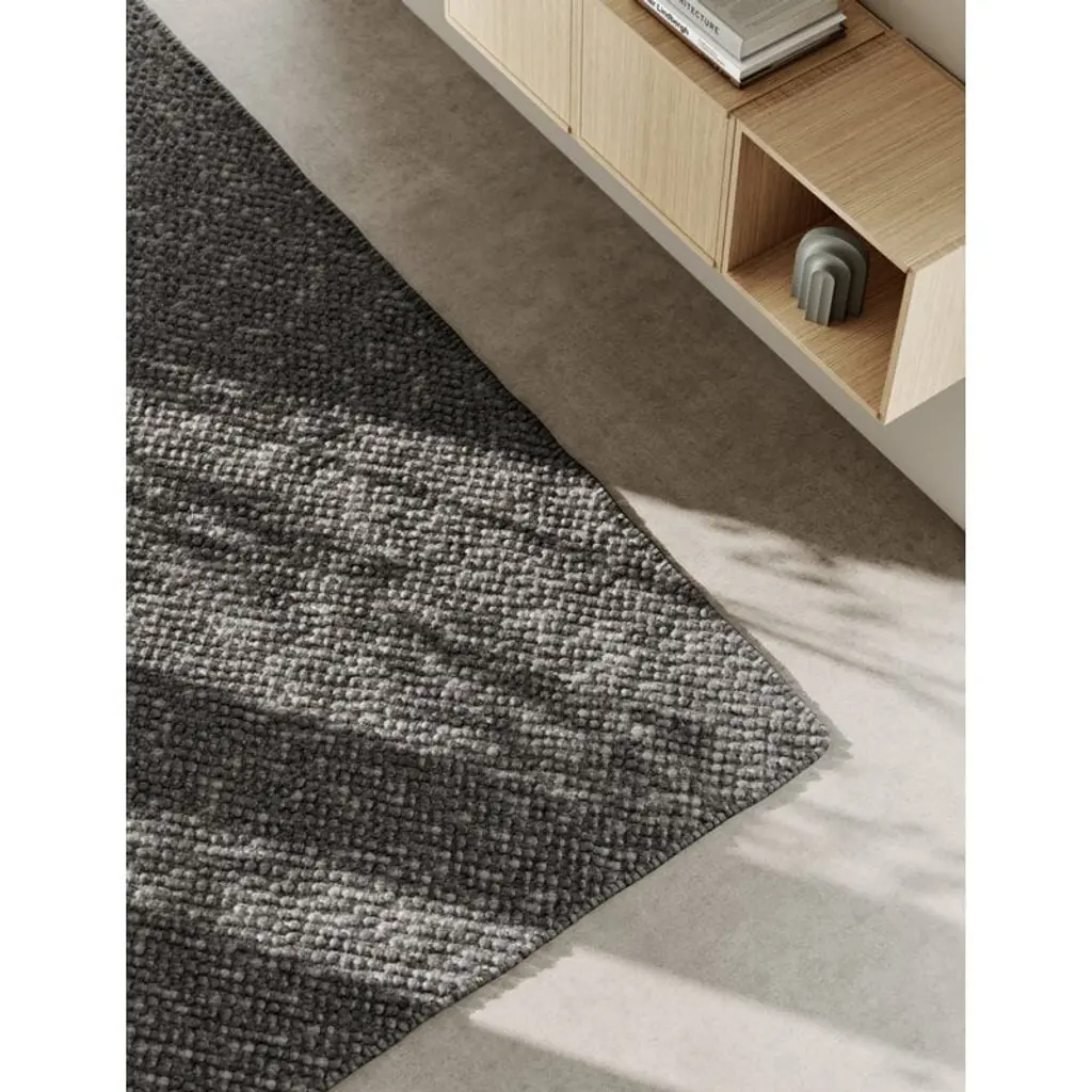 The Tact wool rug by Woud combines a refined and serene design with vivid nuances. The Tact rug has a tactile surface consisting of small, pearl-like loops that feel pleasant under the feet and give the rug a clean, graphic texture. The base, woven with a darker yarn, creates a beautiful three-dimensional impression with the lighter droplets. With its timeless Nordic spirit, the Tact rug looks equally great with a sofa set in the living room or on the bedroom floor next to your bed.