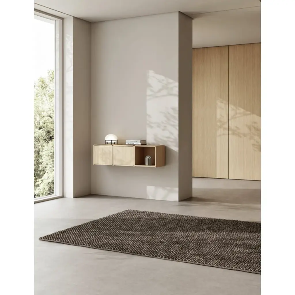 The Tact wool rug by Woud combines a refined and serene design with vivid nuances. The Tact rug has a tactile surface consisting of small, pearl-like loops that feel pleasant under the feet and give the rug a clean, graphic texture. The base, woven with a darker yarn, creates a beautiful three-dimensional impression with the lighter droplets. With its timeless Nordic spirit, the Tact rug looks equally great with a sofa set in the living room or on the bedroom floor next to your bed.
