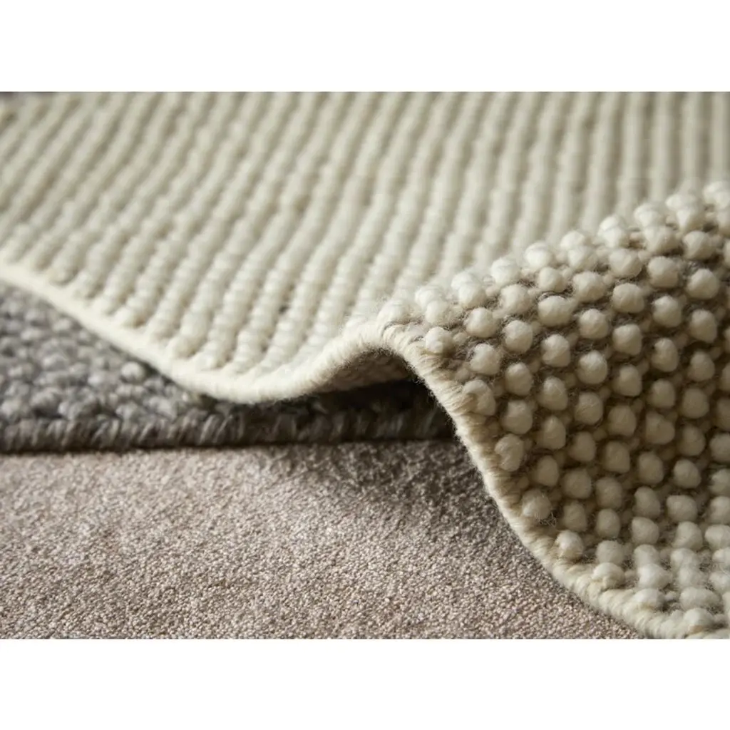 The Tact wool rug by Woud combines a refined and serene design with vivid nuances. The Tact rug has a tactile surface consisting of small, pearl-like loops that feel pleasant under the feet and give the rug a clean, graphic texture. The base, woven with a darker yarn, creates a beautiful three-dimensional impression with the lighter droplets. With its timeless Nordic spirit, the Tact rug looks equally great with a sofa set in the living room or on the bedroom floor next to your bed.