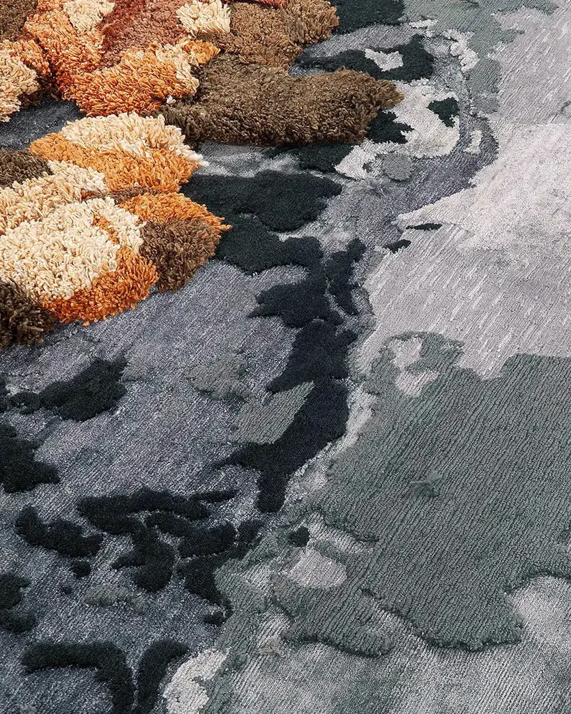 Tactile is an Hand-knotted rug in wool, bamboo silk, viscose and jute. Available in the following variants: Blue, Rose, Gold, Black, Green and Caramel.The individual, in the exploration of reality, merges perceptual data coming from the visual function with those coming from the tactile one. Both are necessary for perception, and the wider and more complete they are, the broader and more extensive is the image of the world we have. The capsule collection Tactile designed by the artist Ilaria Franza takes up her pictorial, visual works and expands them with the tactile experience of the material, bringing the user back to the irreplaceable value of experience.Origin: IndiaPile Composition: Wool, bamboo silk, viscose, juteThickness: ≈ 1 cmTechnique: Hand-knottedCustom colors on request