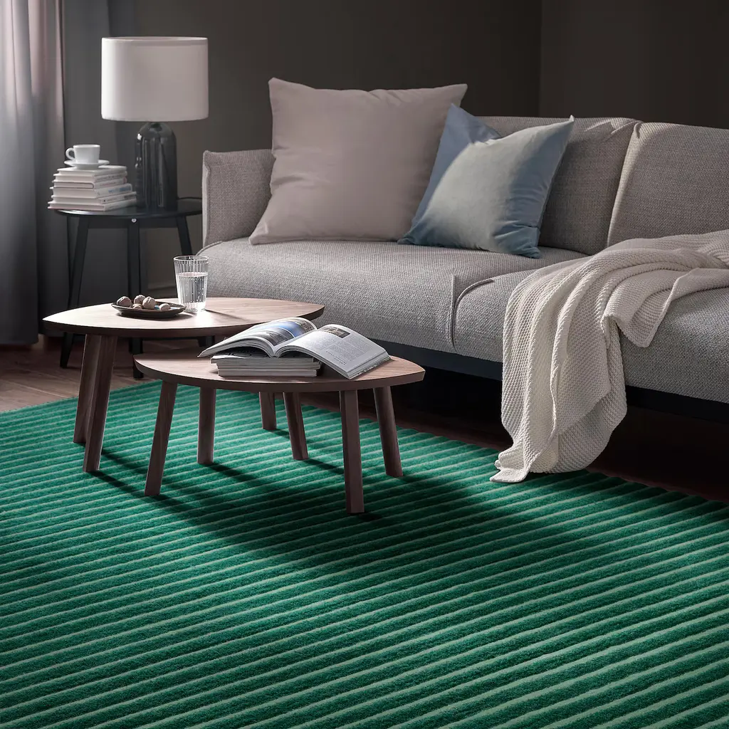 TÅGSPÅR Rug, high pile - green 6 ' 7 "x9 ' 10 ". The mix of a high and low pile creates a 3D effect under your feet. The rug is made of wool so it’s naturally soil-repellent and very durable. A perfect companion for all types of flooring, even those with underfloor heating. Contains sheep wool.