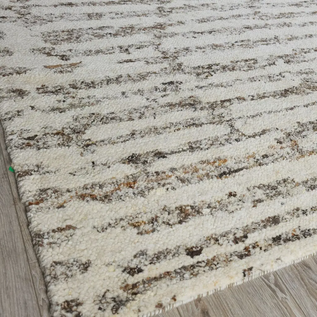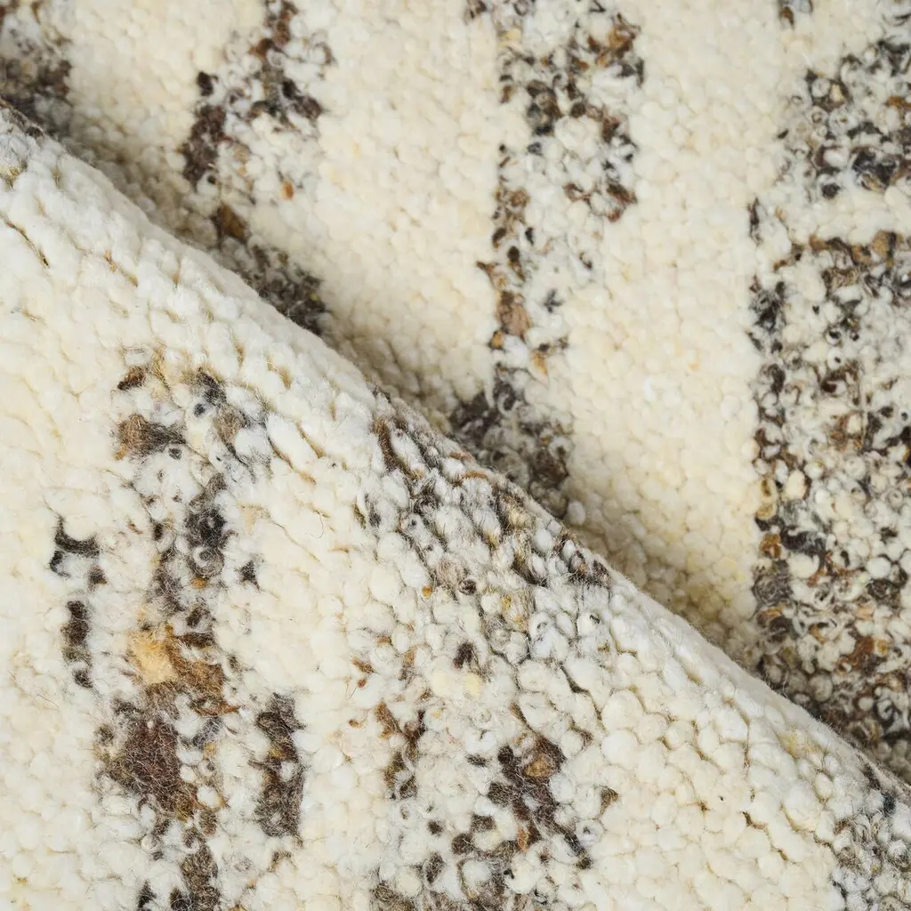 These large-scale Moroccan or Bohemian inspired designs of 100% wool are bold, exotic patterns. The heathered colorations are offset by softer neutral shades and contrasting accents. Large geometric shapes create rich and dynamic textures, an eclectic addition to any space with ultimate comfort underfoot.