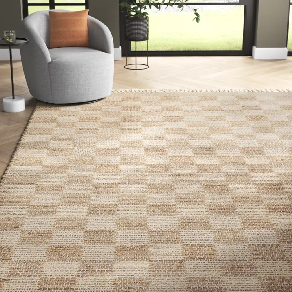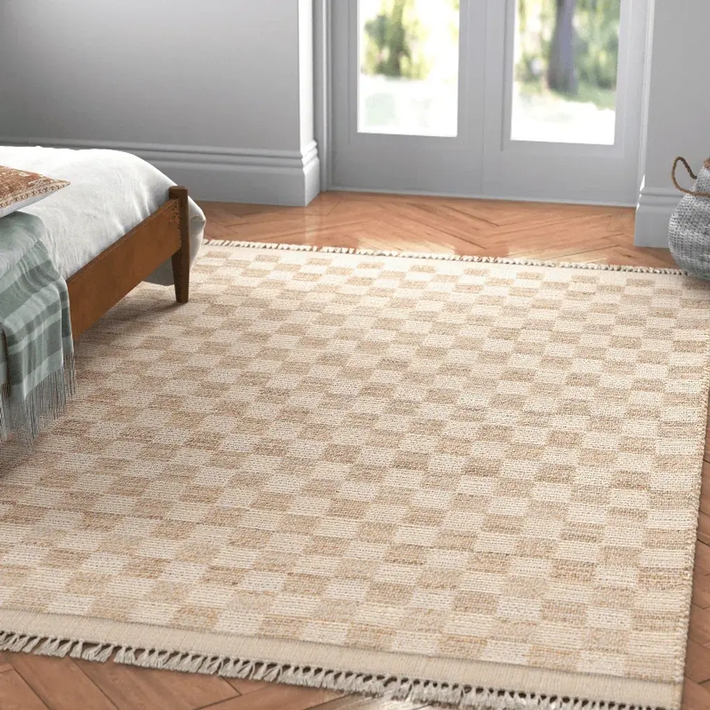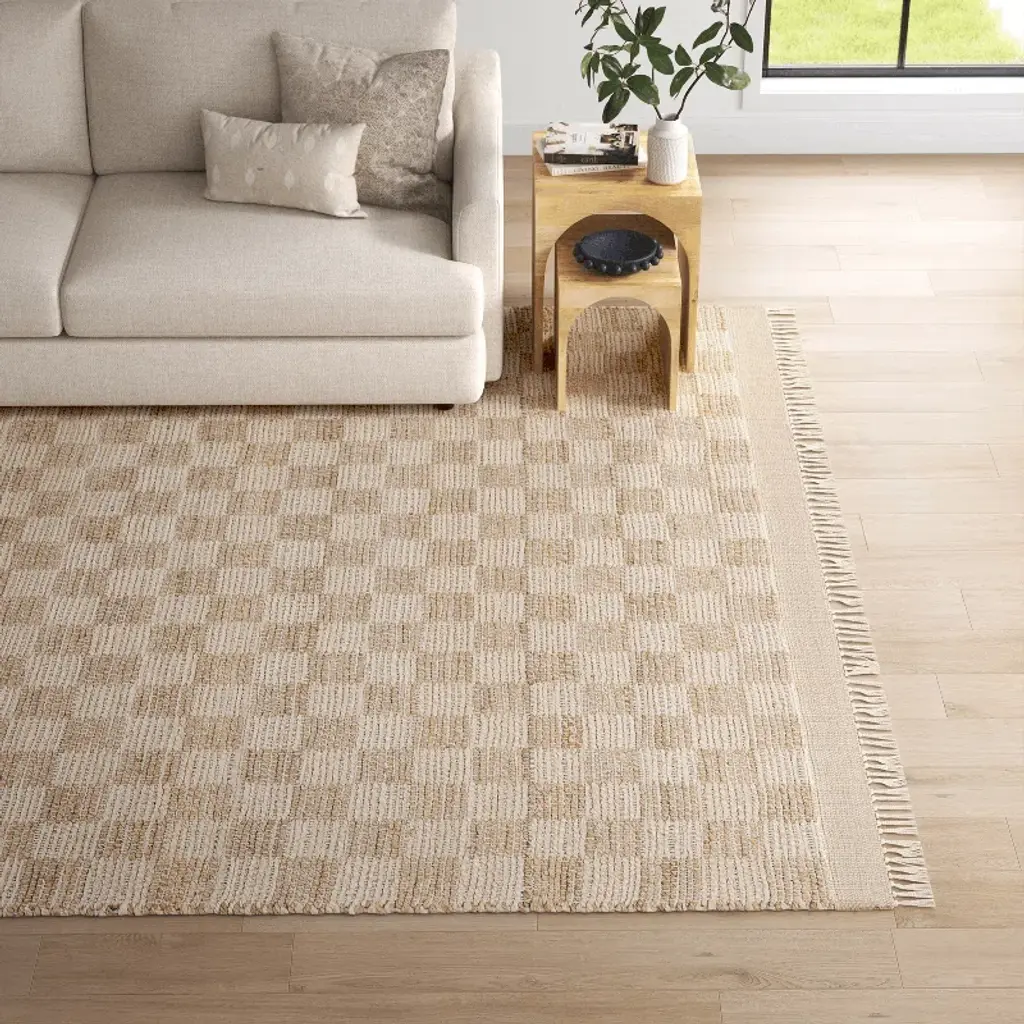 Tali Checkered Handmade Flatweave Area Rug In Brown/beige