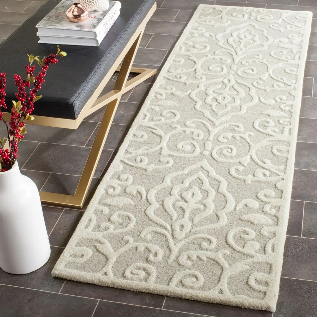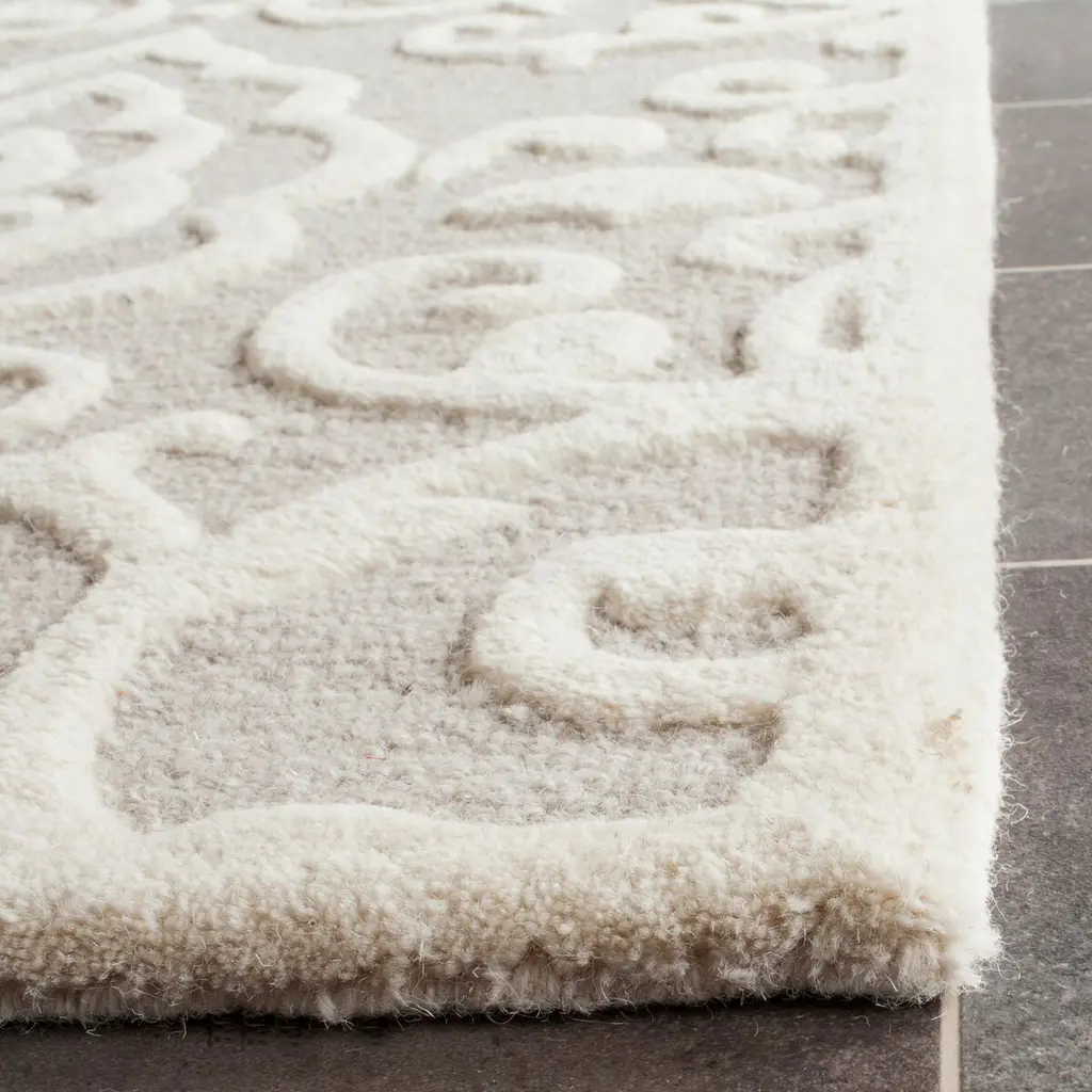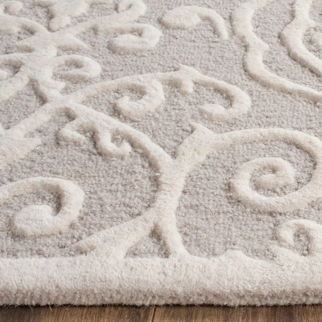 Hand-tufted of plush wool, this rug has an inviting high-low pile that emphasizes its graceful traditional motif. A rug pad is recommended to help prevent slipping and extend the life of the rug.