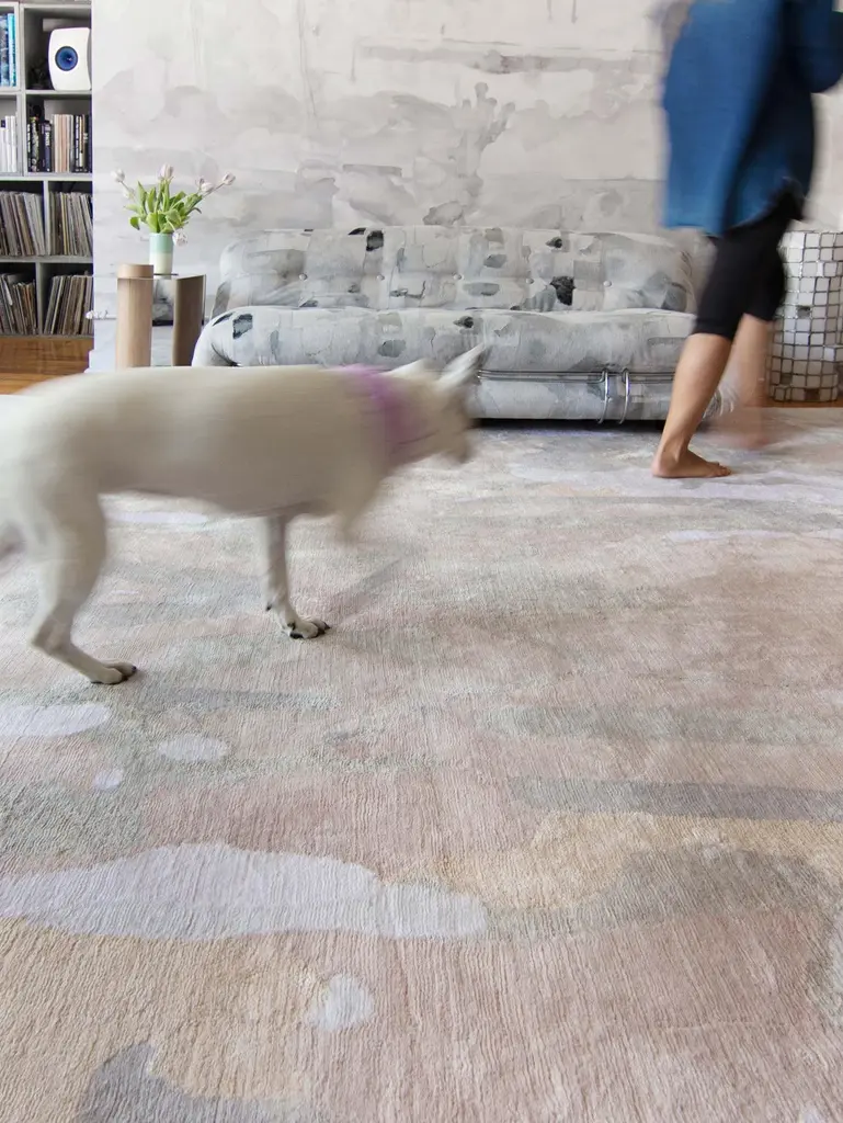 Tamandot Lumier hand knotted Rug by EskayelDimensions: D 11' x H 17'Pile Height: 6 mm.Materials: 70% Merino wool, 30% silk.Eskayel hand knotted rugs are woven to order and can be customized in various sizes, colors, materials, and weave constructions. Eskayel is a New York-based textile design studio that weaves Fine art with exacting craftsmanship. Dedicated to sustainable innovation and lasting beauty, it treats all environments conscientiously. Each of Eskayel’s one-of-a-kind designs originates from a painting inspired by nature or travel and created by studio founder Shanan Campanaro. Using eco-friendly methods, including water-based pigment ink, regional production and sustainably sourced materials, Eskayel evolves these artworks into hand-tied rugs, wall coverings, home linens, fabrics, furnishings, accessories and more. Working with trusted, transparent production partners, the studio makes each item to order to eliminate stock waste and ensure superior quality.Eskayel donates a percent of its total sales to environmental organizations, specifically: Union of Concerned Scientists, Mission Blue, 5Gyres, Sea Shepherd Conservation Society, Surfrider Foundation, Greenpeace and Vital Action Project.