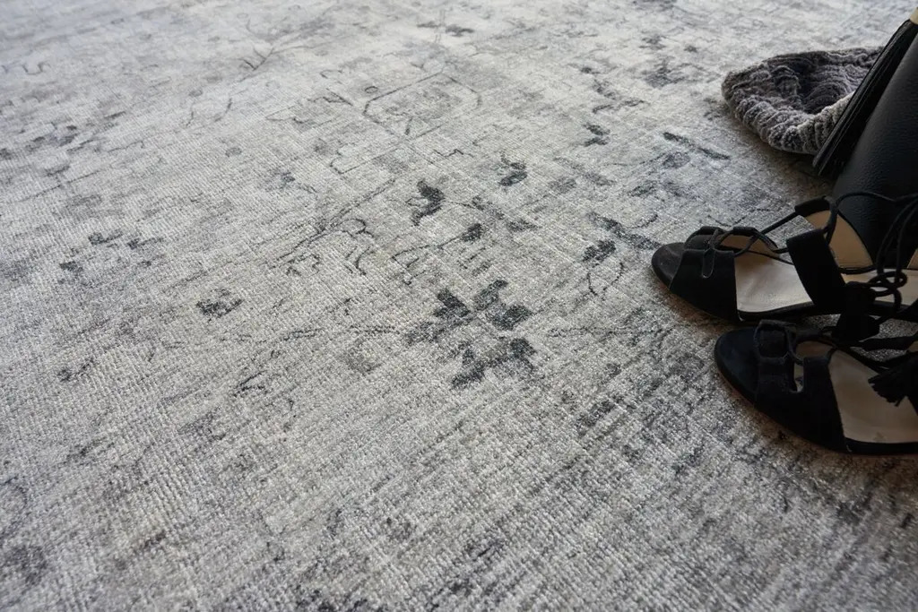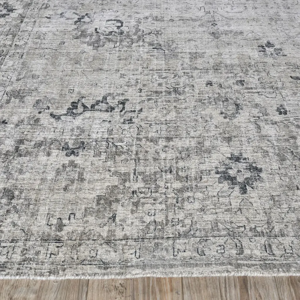 The Tami rug is thoughtfully handcrafted with wool and bamboo silk. Sophisticated traditional motifs and a bordered design define this rug's timeless look, while its antiqued color palette and distressed finish give it a chic vintage-inspired twist.