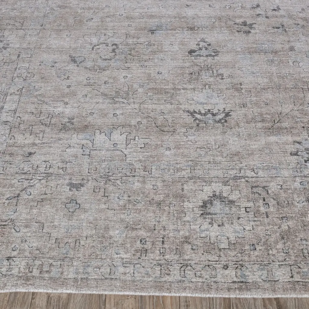 The Tami rug is thoughtfully handcrafted with wool and bamboo silk. Sophisticated traditional motifs and a bordered design define this rug's timeless look, while its antiqued color palette and distressed finish give it a chic vintage-inspired twist.