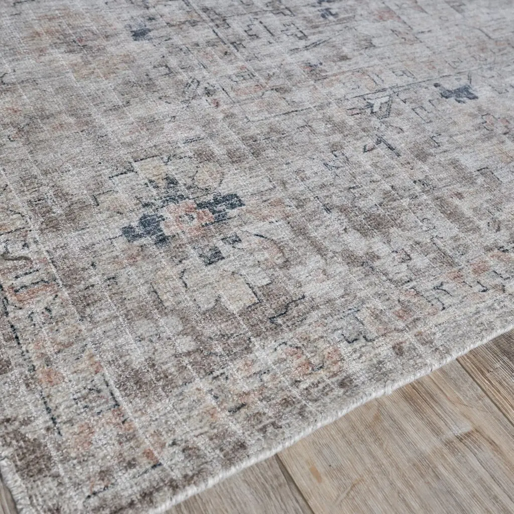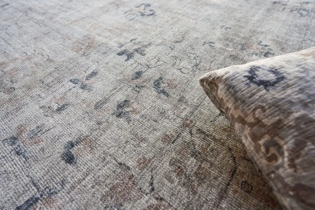 The Tami rug is thoughtfully handcrafted with wool and bamboo silk. Sophisticated traditional motifs and a bordered design define this rug's timeless look, while its antiqued color palette and distressed finish give it a chic vintage-inspired twist.