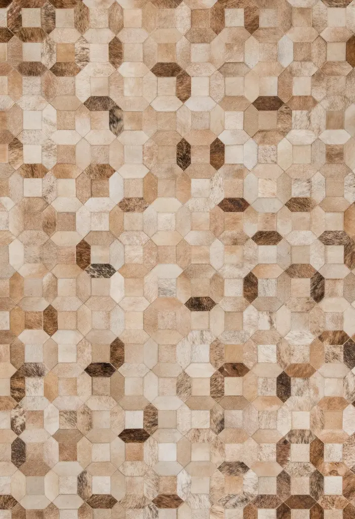 Tan, Caramel Tessellation Trellis Cowhide Area Floor Rug X-Large