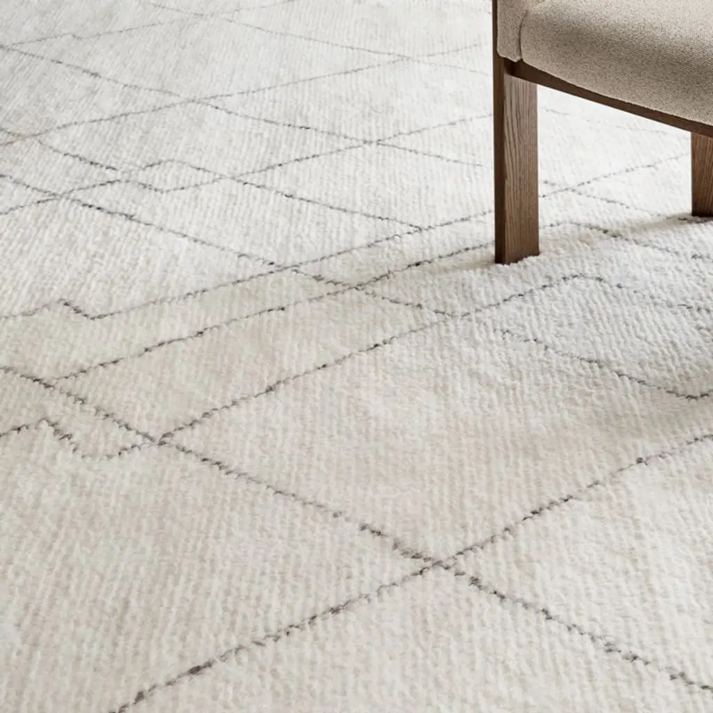 An elevated, updated take on traditional Moroccan patterns, our exclusive Tangier rug weaves a dynamic lattice pattern of slender charcoal lines intersecting over countless shades of silvery grey. Highly skilled artisans craft the rug, knotting and clipping the natural fibers by hand to produce subtle depth and texture. The exquisite rug combines New Zealand wool - prized for its long, pliable fibers, lustrous sheen and incomparable softness - with a touch of cotton for rich texture and minimal shedding. We adore this striking yet serene rug in the bedroom, where its supersoft indulgence can be appreciated underfoot.Try it on first. Because color representation may vary by screen, using a swatch is an easy way to see exactly how your favorite rugs will look in your home. Our rug swatches ship free and can be returned online or at any store for a full refund.6'x9' rugs and 8'x10' rugs can be ordered online and picked up in a store near you. It's fast, easy and free.For larger rugs, order online and arrange a convenient delivery or warehouse pickup.