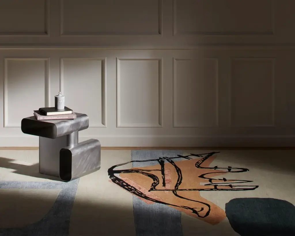 Tapis La Main Ouverte is an handmade wool rug. Inspired by Le Poème de l’Angle Droit, the art book published in only 250 exemplars that contains the vision of Le Corbusier on architecture, this rug portrays a lithograph in seven colours produced by the historic Paris printer, Studio Mourlot. The collage depicts an open hand, symbol of the Indian city of Chandigarh, designed by Le Corbusier himself in the 1950s, and a key image in the maestro’s philosophy, symbolic of what is offered and received, utilised by the great architect as a metaphor for generosity and sharing in a universally meaningful gesture. The uniqueness of Tapis La Main Ouverte lies in the entirely artisan production technique – each rug contains 72,300 knots per square metre, each one strictly tied by hand.MATERIALS: 75% New Zealand wool, 25% viscose