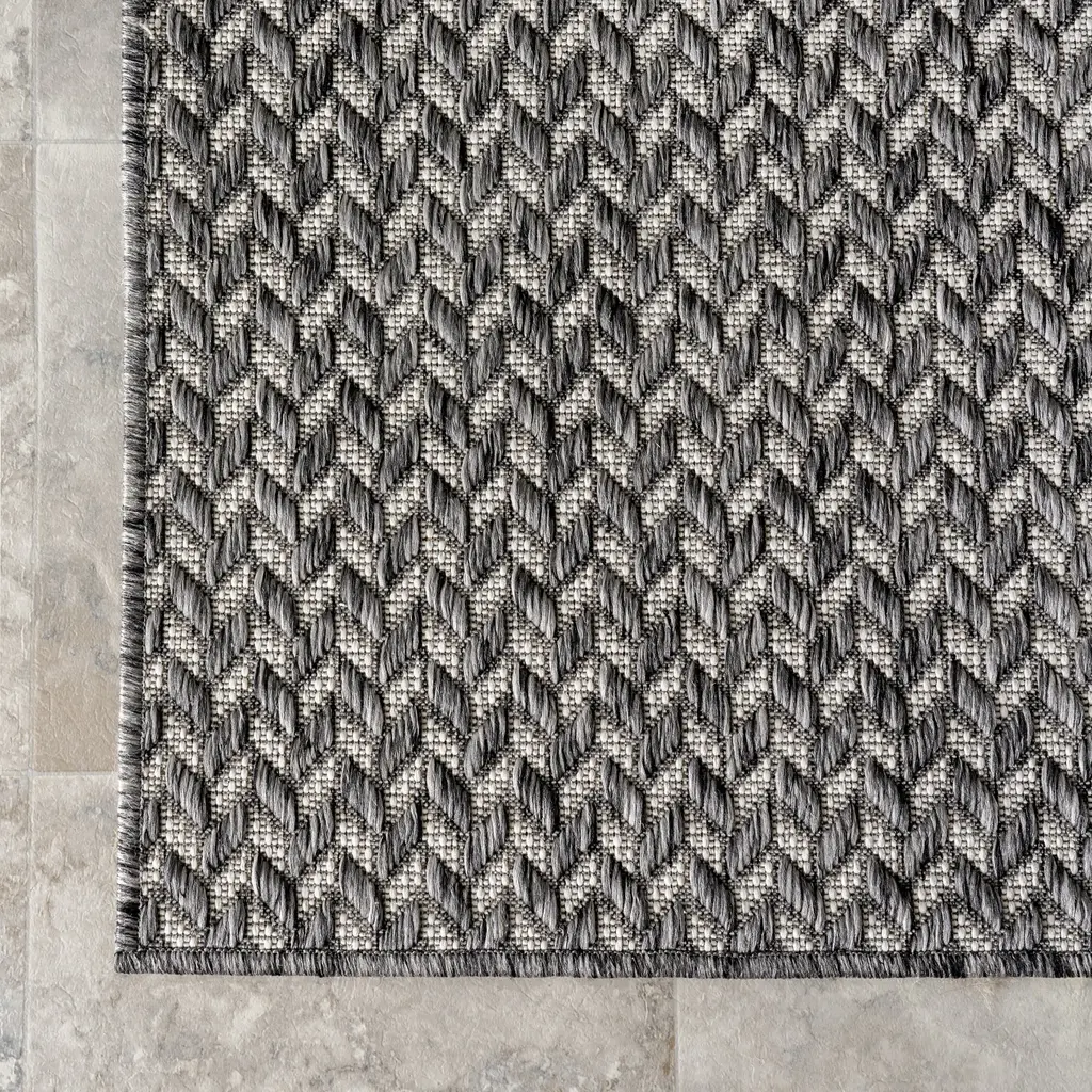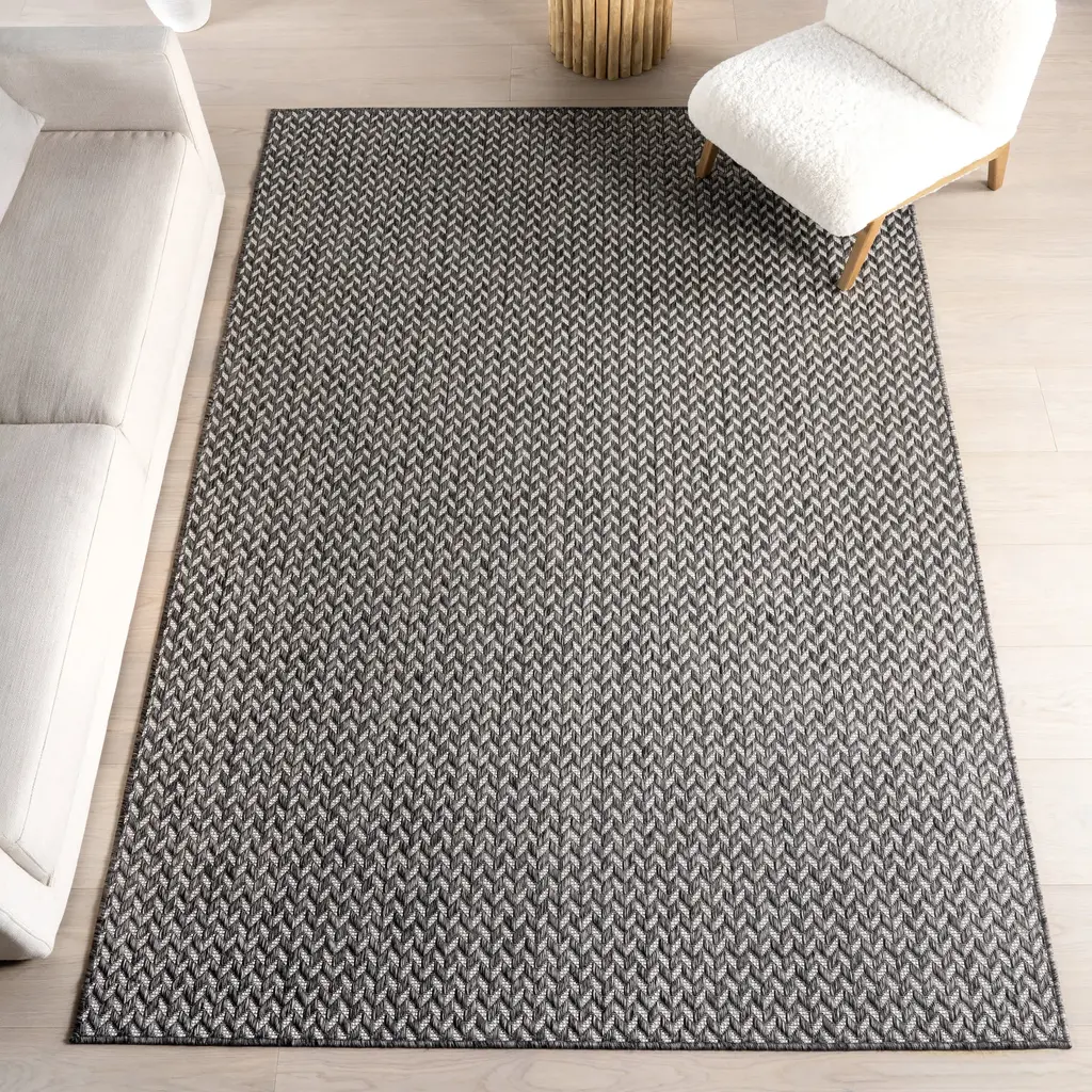 Add design and luxury to any room with this versatile indoor/outdoor floor piece. The herringbone pattern gives the rug a sophisticated look, while the durability of synthetic fibers ensures softness under bare feet. This area rug will flawlessly fit into any existing decor space, whether you decide to use it to cozy up around indoors, or entertain with outdoors. Choose from a full range of sizes to find your perfect fit. Make the most of your time at home with our pet-friendly and easy to clean area rugs.
