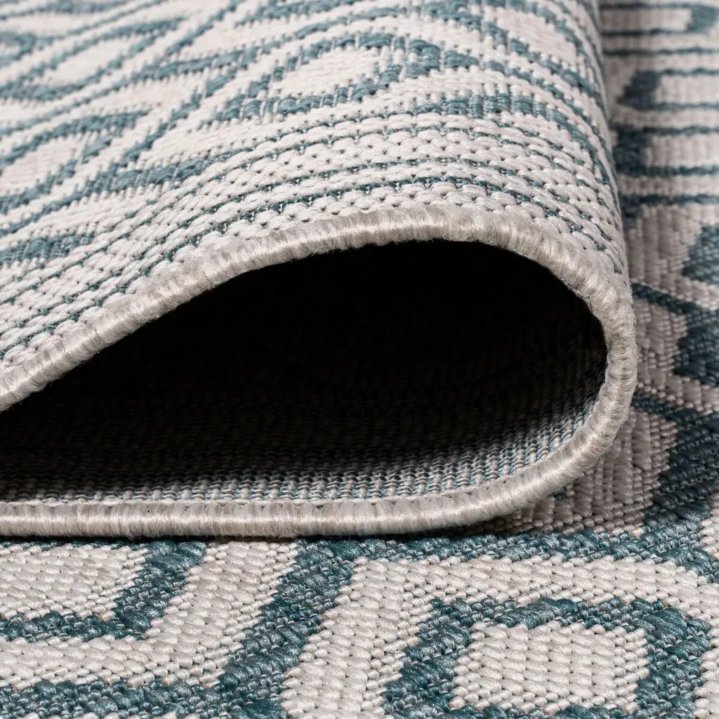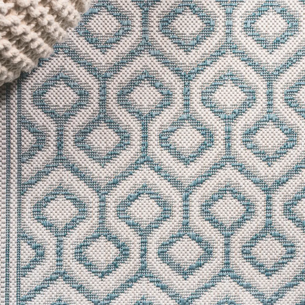 Mediterranean floor tiles inspired the geometric motif of this indoor/outdoor rug. Made of durable polypopylene, the rug can be hosed clean and will stand up to heavy traffic. A rug pad is recommended to help prevent slipping.