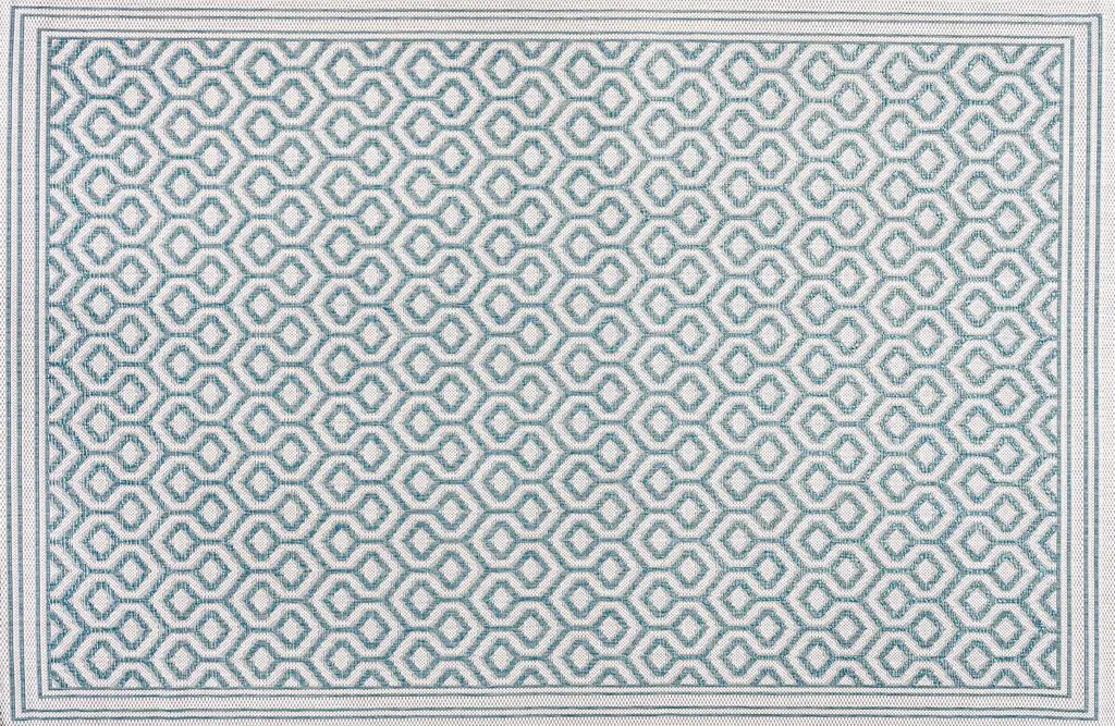 Mediterranean floor tiles inspired the geometric motif of this indoor/outdoor rug. Made of durable polypopylene, the rug can be hosed clean and will stand up to heavy traffic. A rug pad is recommended to help prevent slipping.
