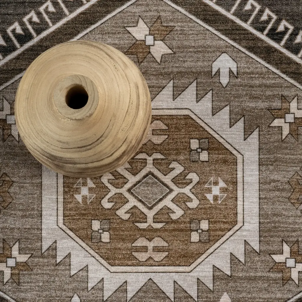 Earth tones, southwestern-style geometrics, and a traditional motifthese are the design elements that make up the Taro Medallion Washable Rug. This stunning, easy-to-care-for style blends the love of nature and vintage seamlessly. Beautiful on its own or rolled out atop a jute or sisal rug, this versatile piece will look perfect in your space.