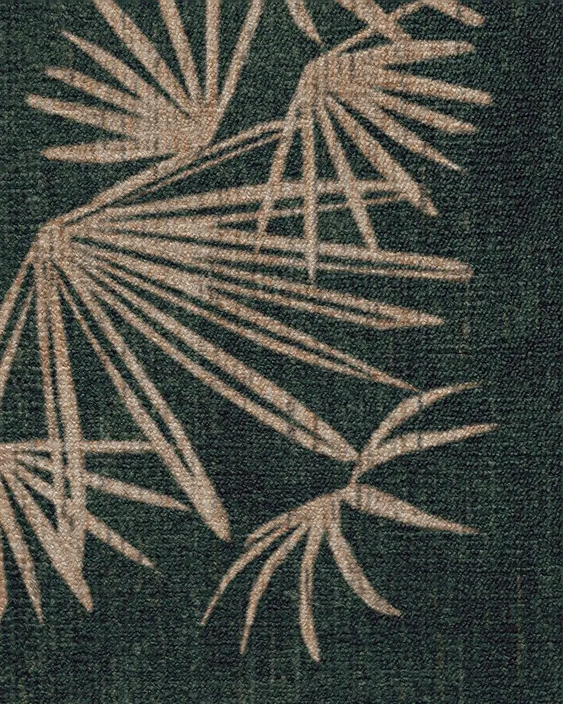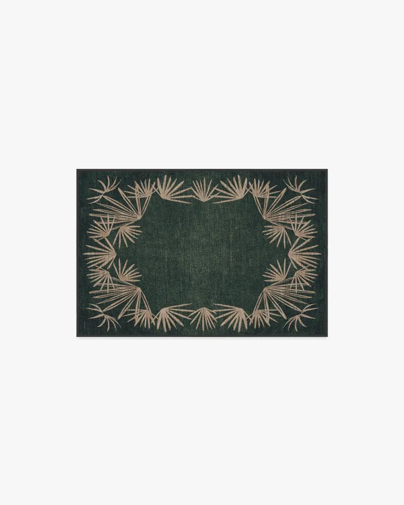 Beautiful. Breezy. Boho. Inspired by the swaying palm trees in Elysian Valley, Justina's former home, our Justina Blakeney Tarsila Forest Rug borrows artistic influence from Brazilian painter Tarsila de Aguiar do Amaral. The rich forest green background is surrounded by natural, warm palm motifs that bring serenity and style to any space. Water-resistant, stain-resistant, and machine-washable. Rug colors may vary slightly according to your device and the lighting in your space.