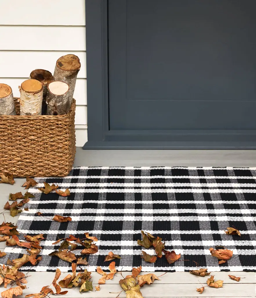 Add a touch of classic style to your high-traffic spaces with this lightweight, washable, and durable indoor/outdoor rug in a timeless yet modern black and ivory plaid.