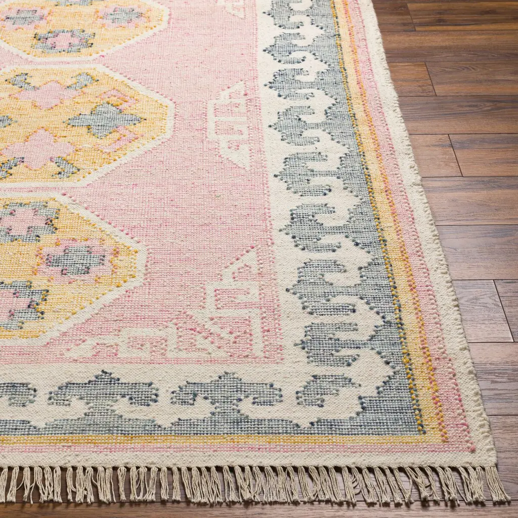 With its fresh palette and time-honored motifs, this handwoven wool rug will bring quiet but undeniable verve to a room. The 2.5-inch-long fringe adds artisanal allure. A rug pad is recommended to help prevent slipping and extend the life of the rug.