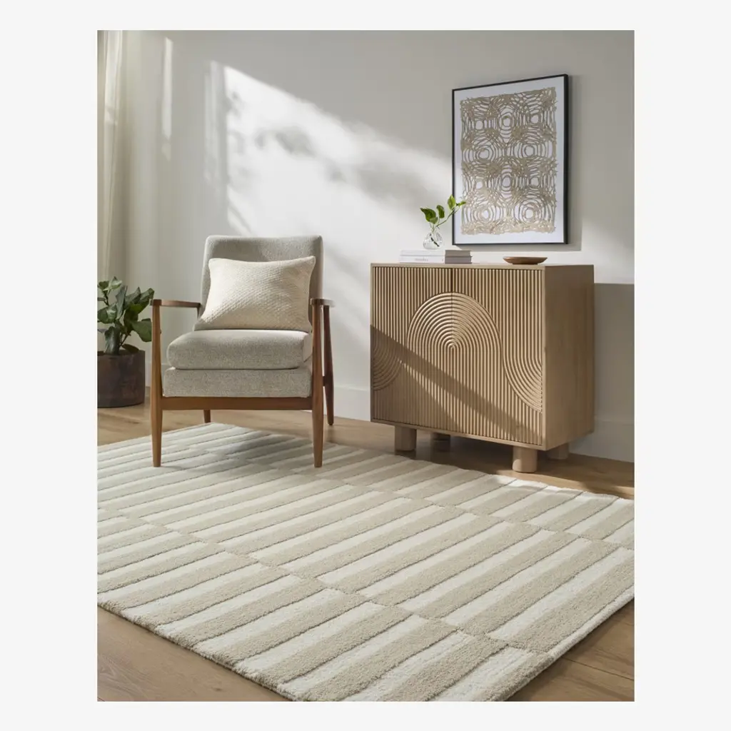 With its contrasting colors and modern take on a checkered pattern, the Taupe Ingrid Rug beautifully blends contemporary style and comfort into one chic package.