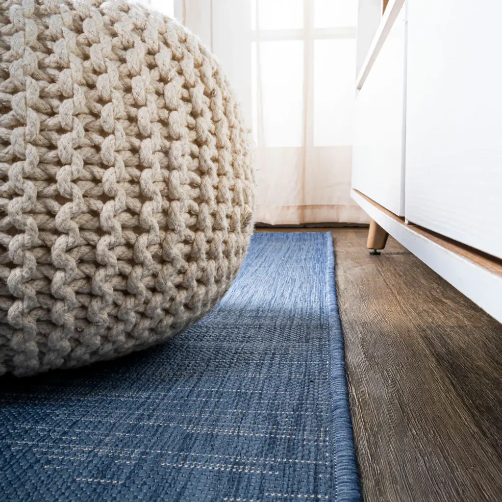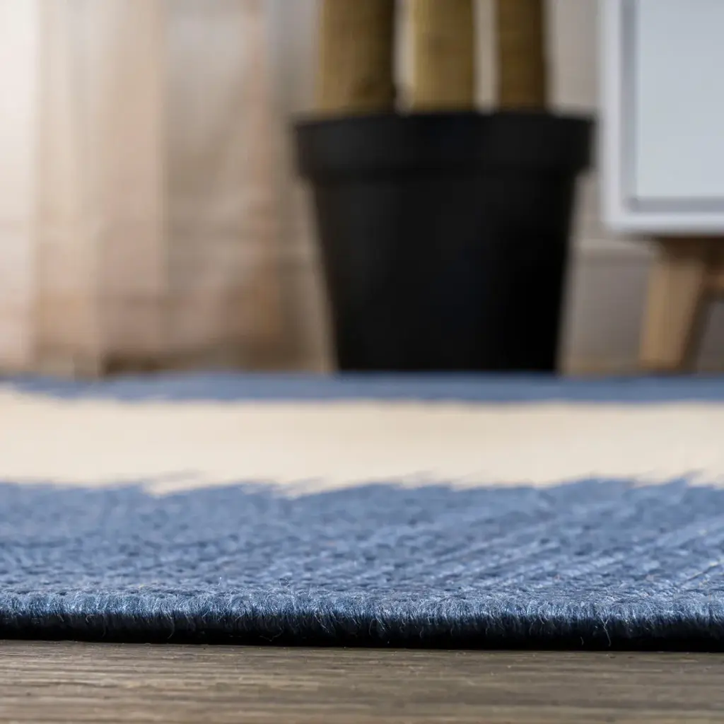 Our modern rug''s denim blue border is woven with a strie effect to create a central stripe design. This versatile rug''s minimalist look is perfect for a coastal cottage porch or modern outdoor patio. The simple design is a family-friendly solution for a Scandinavian style living room, modern bedroom, kitchen hallway, entry or kids bedroom. The pet-friendly and kid-proof flatweave design makes it easy to clean, and perfect for the beach house.Features:• Power loomed with a flat pile that''s soft and durable• Woven in shades of medium blue, ivory and beige• Made from easy-care polypropylene - just sweep, vacuum or hose down with mild soap and water• 100% Polypropylene• No backing, use of rug pad is recommended (sold separately)• Power Loomed in Turkey• Actual Dimension: 2 ft. 2 in. x 8 ft.• Color: Blue/Beige• Thickness measures: 0.19 in.• Available in multiple sizes and/or colorsRug Care:• Vacuum regularly and spot clean as needed; avoid direct and continuous exposure to sunlight; use brushless vacuum; remove spills immediately; if liquid, blot with clean, undyed cloth by pressing firmly around the spill to absorb as much as possible; for hard to remove stains, professional rug cleaning is recommended; store in a dry, well ventilated area and rotate for consistent wear• Packing and shipping may cause temporary creases in rugs, which will flatten out after a week on the floor; to expedite the process, try back-rolling your rug before laying it down, and then allow ample time for the remaining creases to relax• Please Note: Due to differences in monitors, some rug colors may vary slightly. Lengths and widths may vary from the published dimensions. Patterns may vary slightly according to shape and size selected.About us:Style your floors with JONATHAN Y. By combining fine craftsmanship and design, this New York creative studio is bringing fashion to your floors. The collection mixes sustainable organic materials, vibrant colors and trend worthy styles to create JONATHAN Y''s distinctive catalog of rugs.
