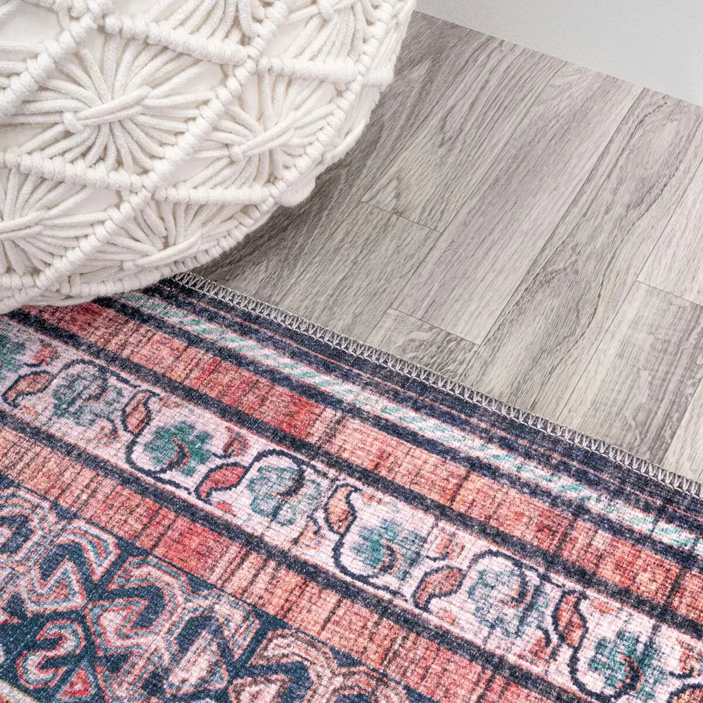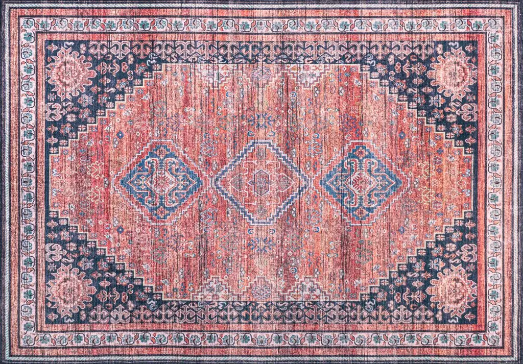 Antique Persian carpets inspired this rug's ornate design and abrash—the fading seen in fine vintage floor coverings over time. Unlike those rugs, however, this one is made of machine-washable polypropylene. A rug pad is recommended to help prevent slipping and extend the life of the rug.