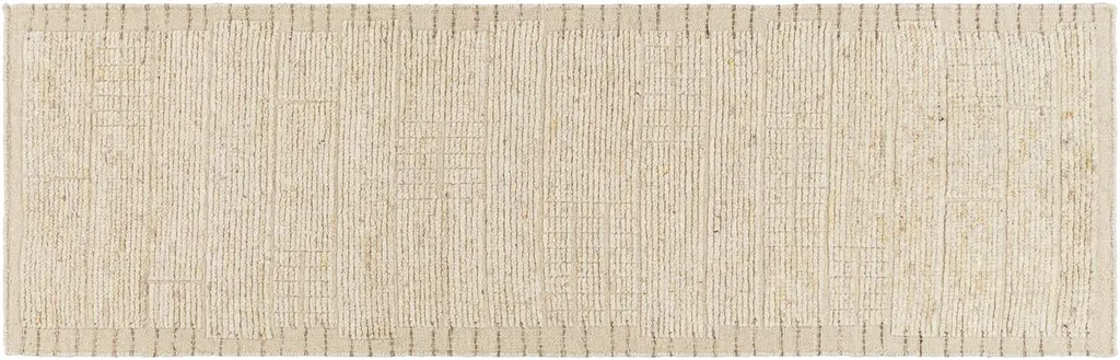Subtle color gradations add to the depth and artisanal allure to this hand-knotted rug, which features a textural striped border. A rug pad is recommended to help prevent slipping and extend the life of the rug.