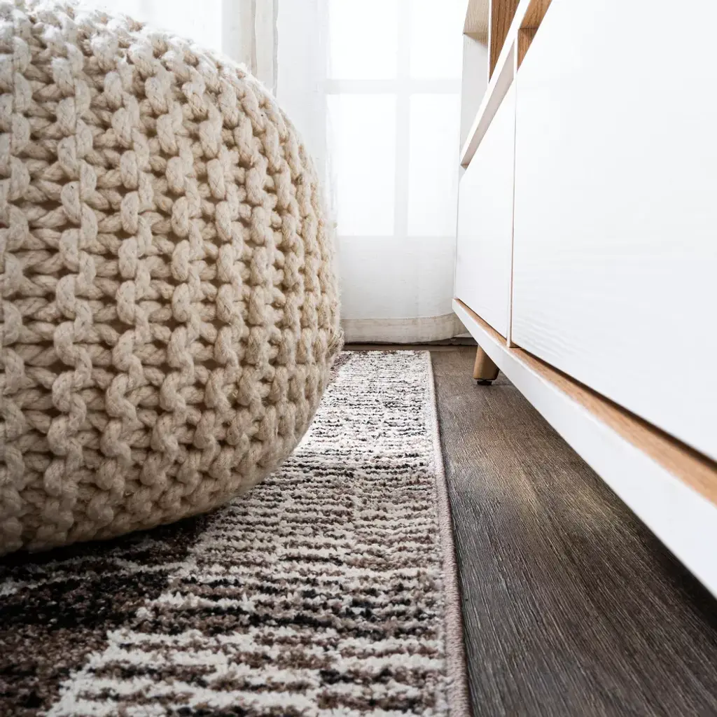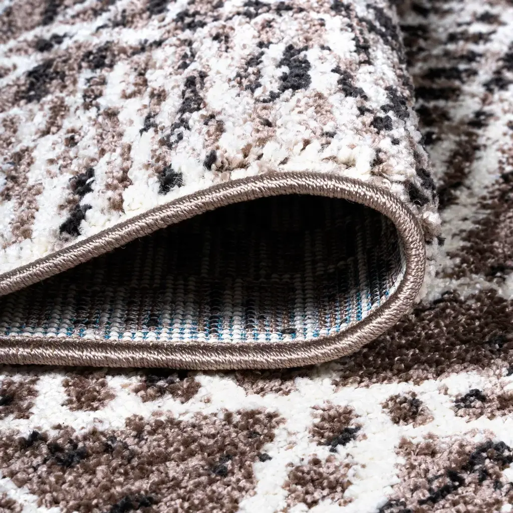 Inspired by vintage Moroccan rugs, our easy-care rug has a soft, low pile. The rich brown and ivory pattern features a design of diamonds and geometric shapes woven with a distressed look. Anchor your modern Bohemian Inspired space; add softness to a bedroom, living room, dining room, kitchen or entry; this is a durable rug with timeless style.