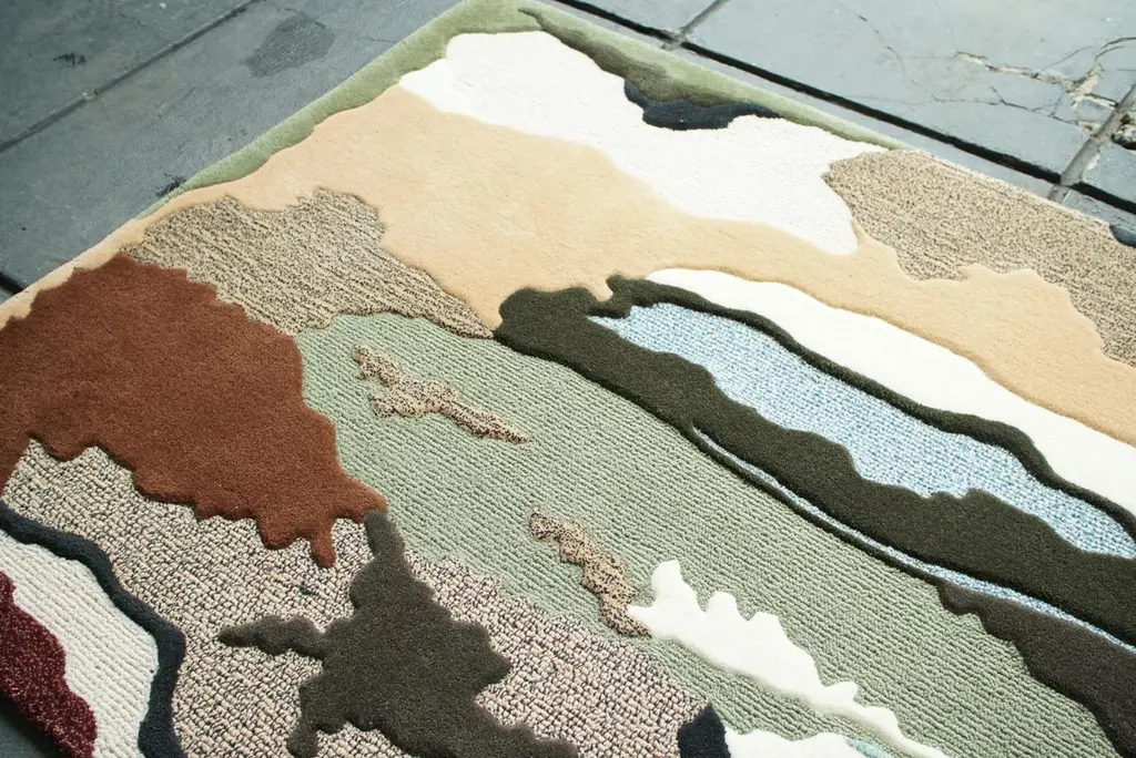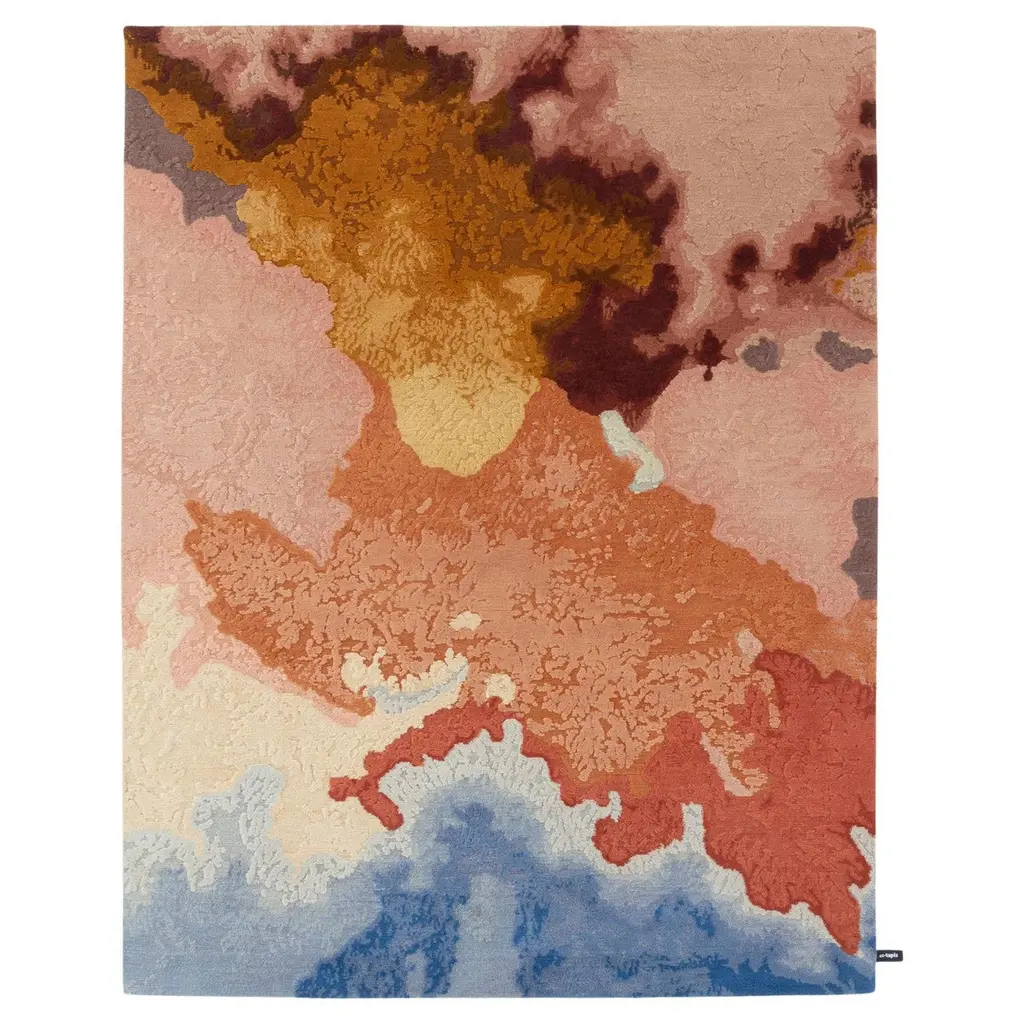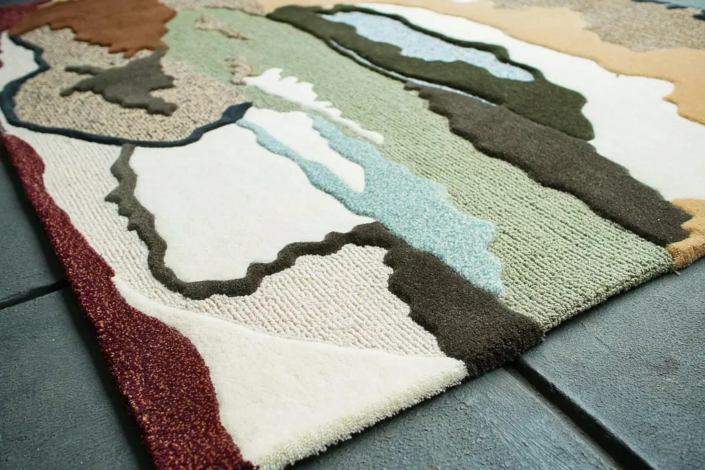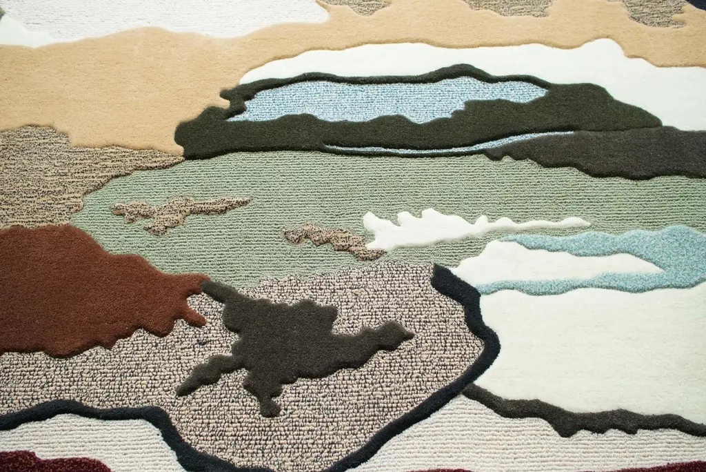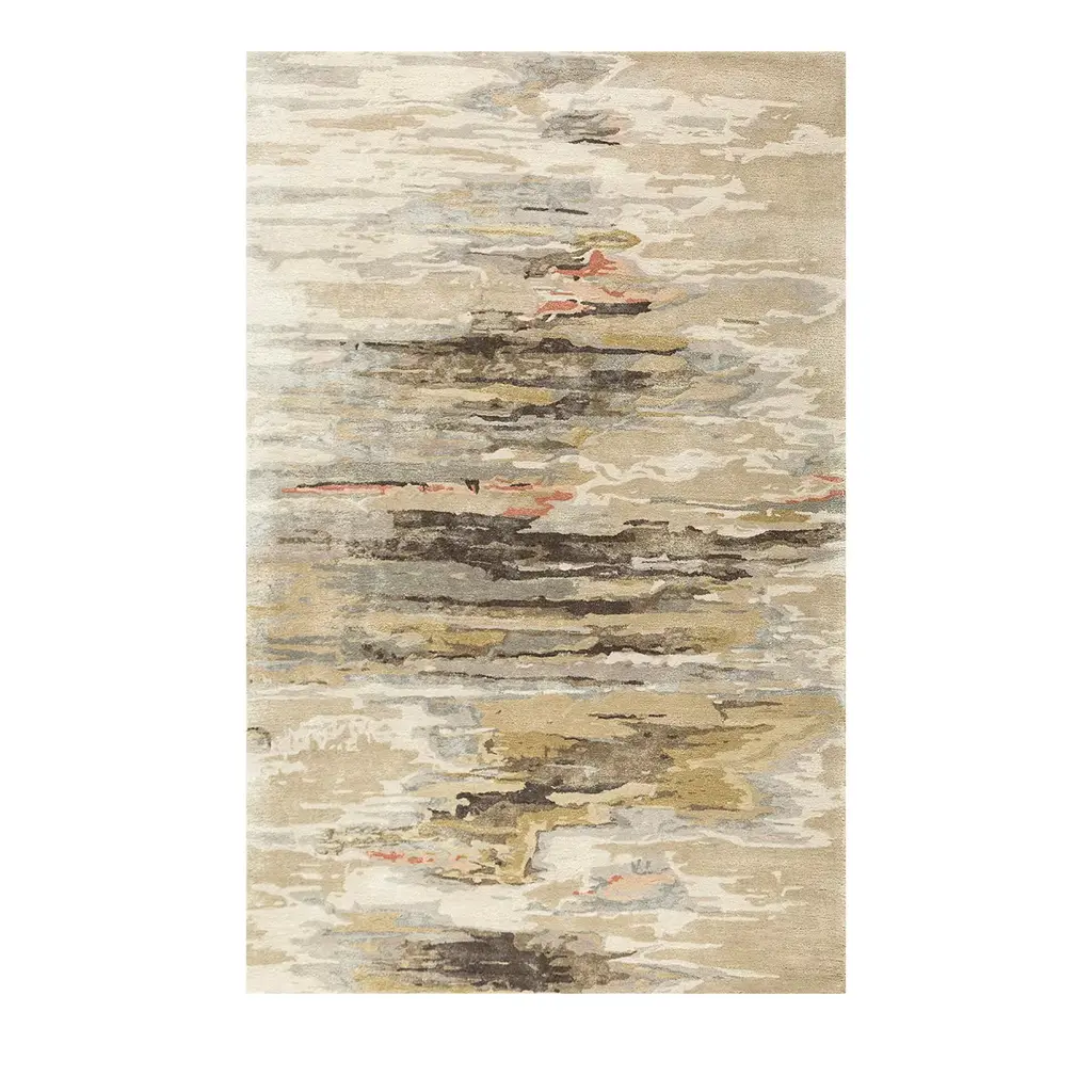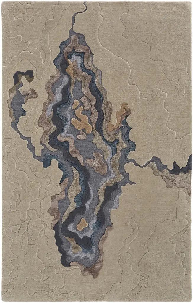 Terra Flow RugThis rug has an earthy, organic, and abstract aesthetic with a nature-inspired color palette and a mix of textures. Inspired by the raw beauty of nature, the Terra Flow rug features an abstract pattern resembling rock formations, flowing rivers, and desert landscapes. The textured design incorporates a mix of high and low piles, creating depth and dimension.Color Palette:•Earthy tones: Beige, sand, and warm brown•Natural greens: Olive, sage, and deep forest green•Soft neutrals: Ivory and off-white•Subtle contrast: Deep rust red and muted blueThis rug is perfect for adding a touch of organic luxury to any space.