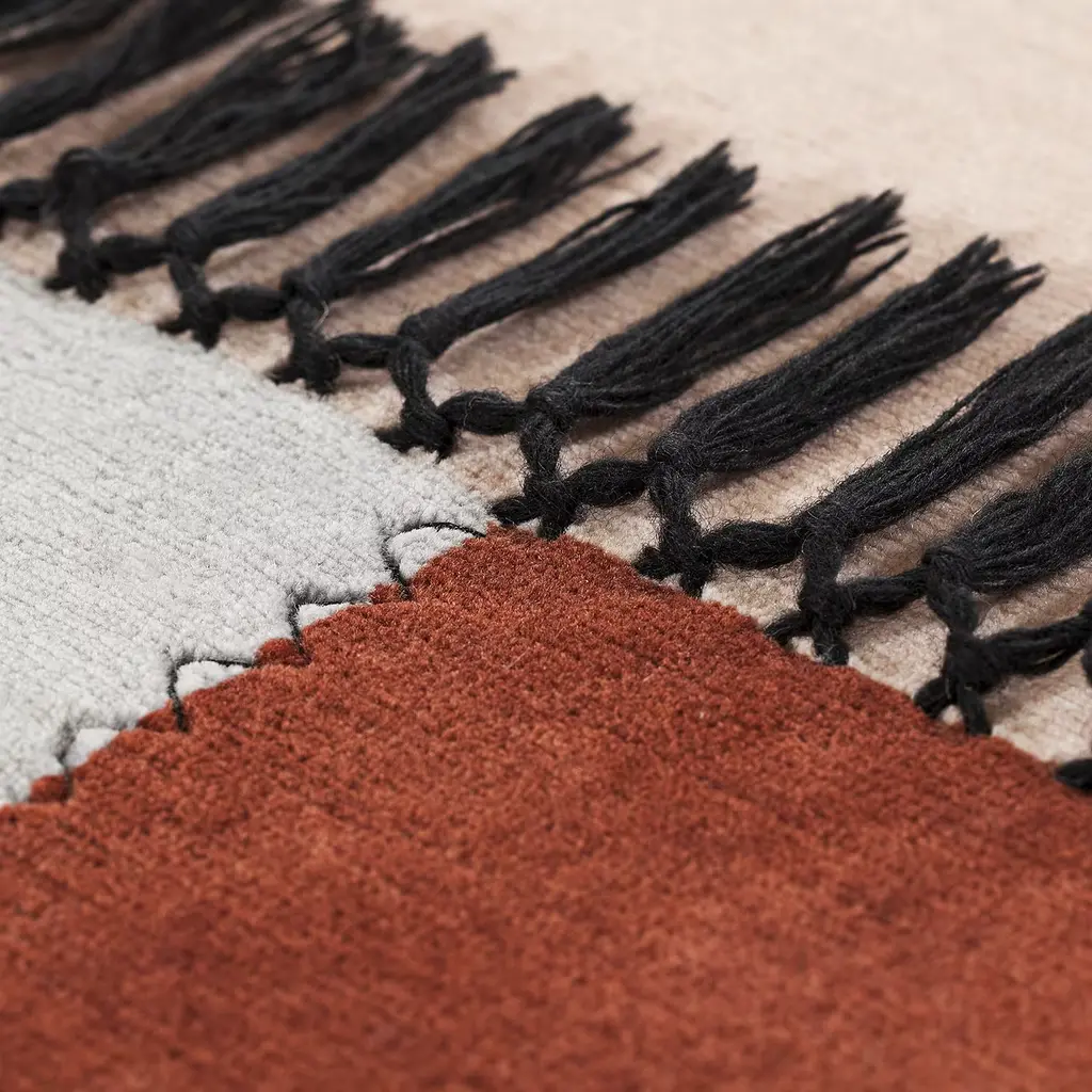 Six urban localities emerged from a collaboration between Mohebban and Elena Caponi, defined by unique abstractions and colors, transposed into fabric and stitching. The splendid Terrazze rug collection is a large collage of geometries and sensations originating from India and the Monforte version is crafted from wool and cotton and expertly hand-knotted.