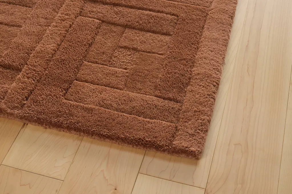 Full of texture and dimension, the handtufted Terre Rug (2023) features concentric geometric patterns created by alternating tufting styles and pile heights. Vacuum the rug periodically - do not use a rotating brush. Shedding is a natural, common occurrence and will decrease over time. Made in India.