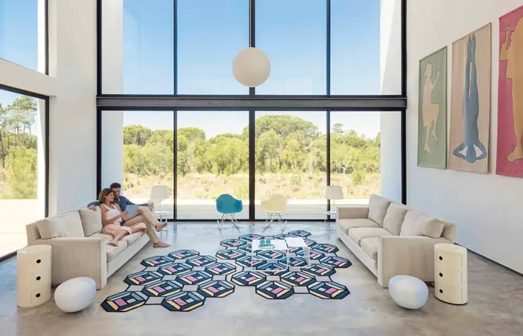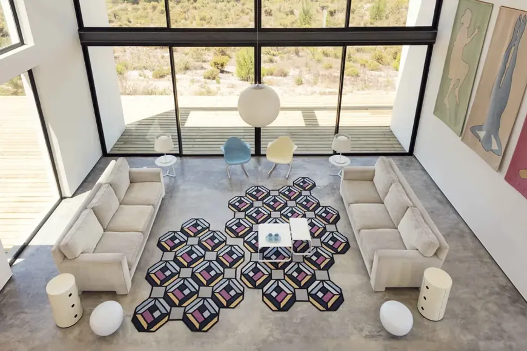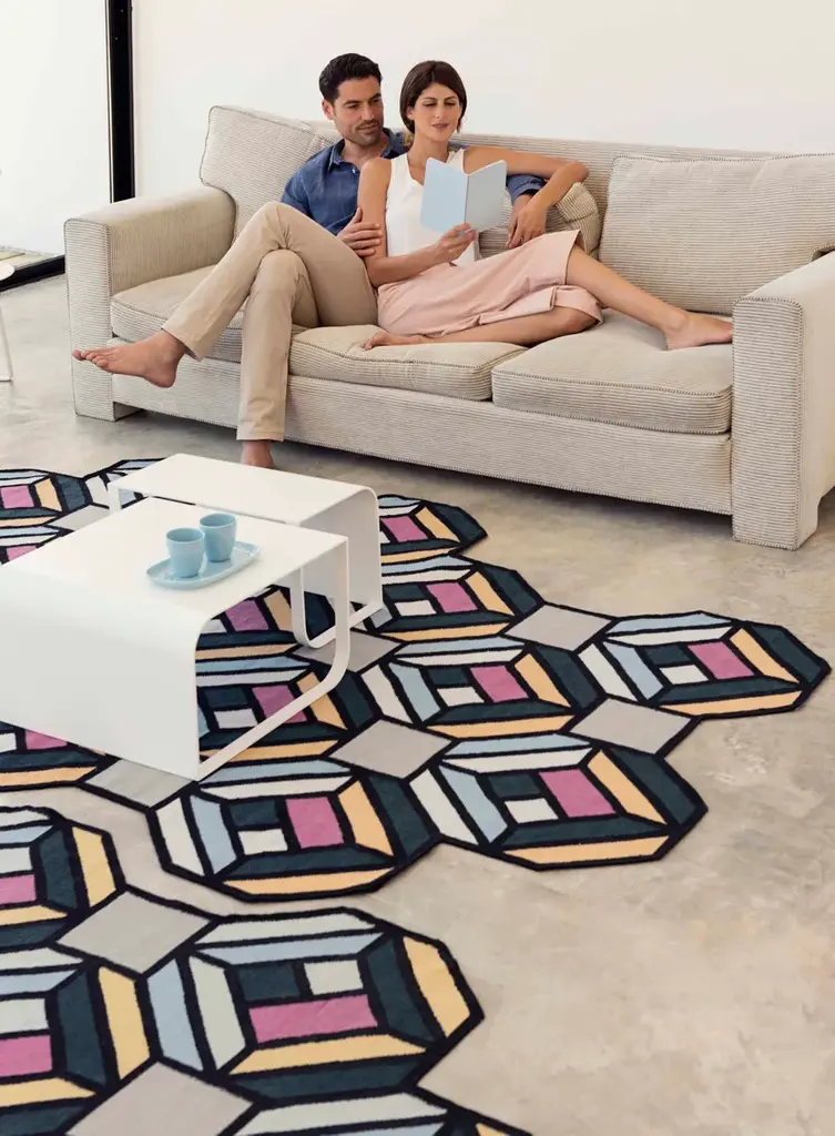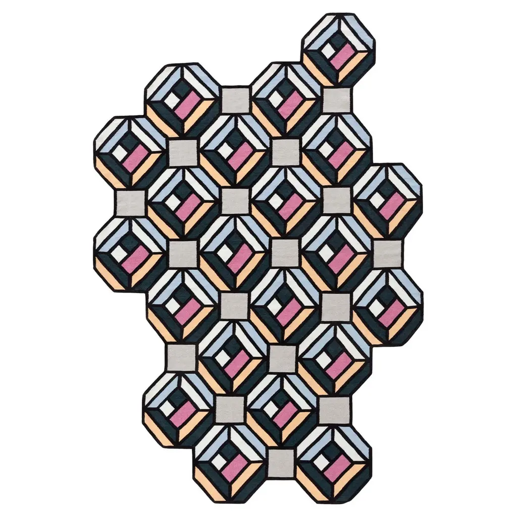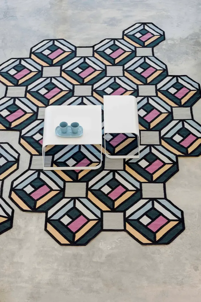 Tetragon is the most colourful rug in this collection, with a balanced mix of grays, blue, yellow, pink and dark green.Technique: KilimComposition: 100% wool. Reversible. High quality KilimColours: Tetragon: Blue. A basic rug, classic, practical, accesible…and now contemporary as well. Always in wool, reversible and obviously hand-made. 100% new wool.