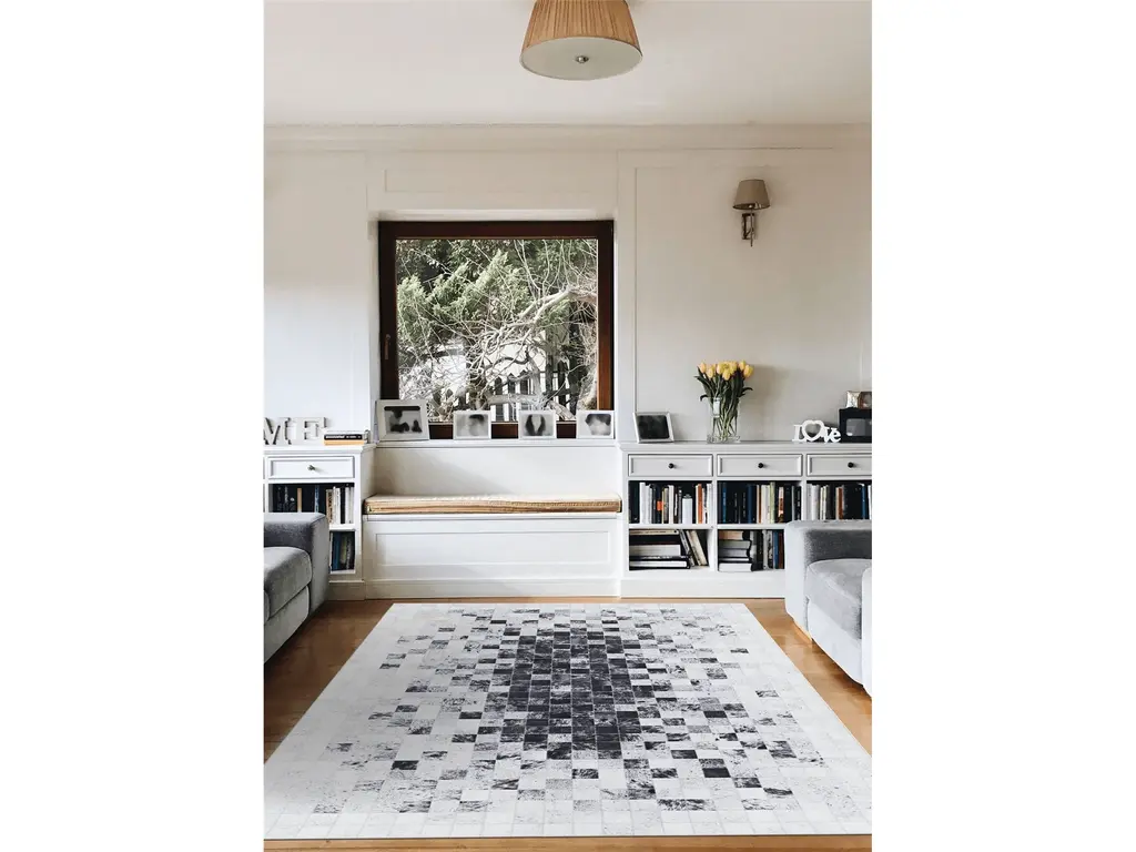 Fusing the relaxed and casual look of traditional cowhide area rugs, the Tetris Collection takes the hide trend to another level. These digitally printed area rugs were designed to emulate cowhides in various geometric patterns. Featuring a 100% polyester machine-woven base and a non-skid backing, these hair-on replicas will provide any setting with an airy and cozy feeling. Perfect for monochromatic settings that need a strong neutral foundation, the appearance of these chic area rugs are so realistic that their digitally printed designs will provide an extra sense of dimension and feel without the use of any texture. Crafted with a casual-chic, fresh aesthetic, these digitally printed fashions are both innovative and intriguing.