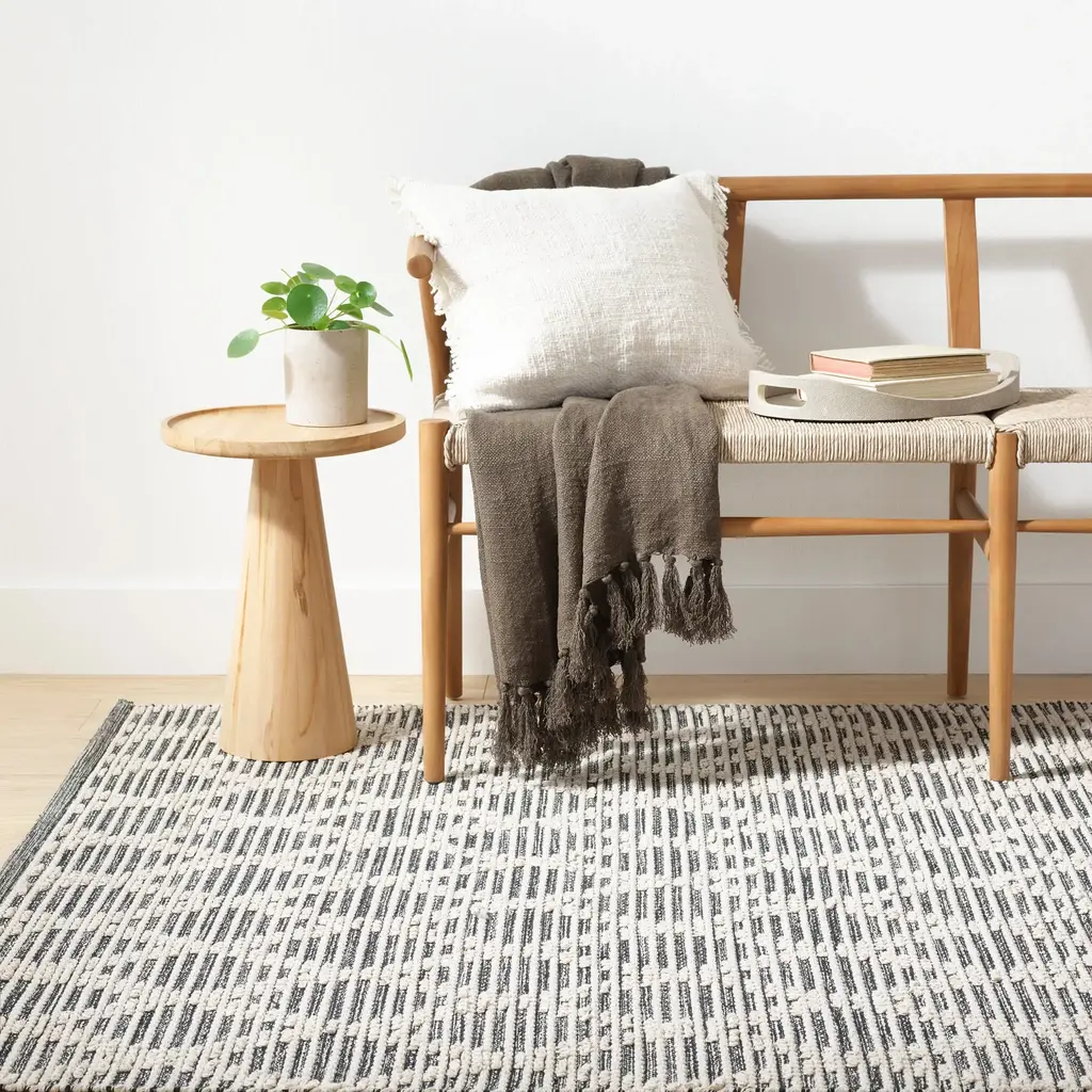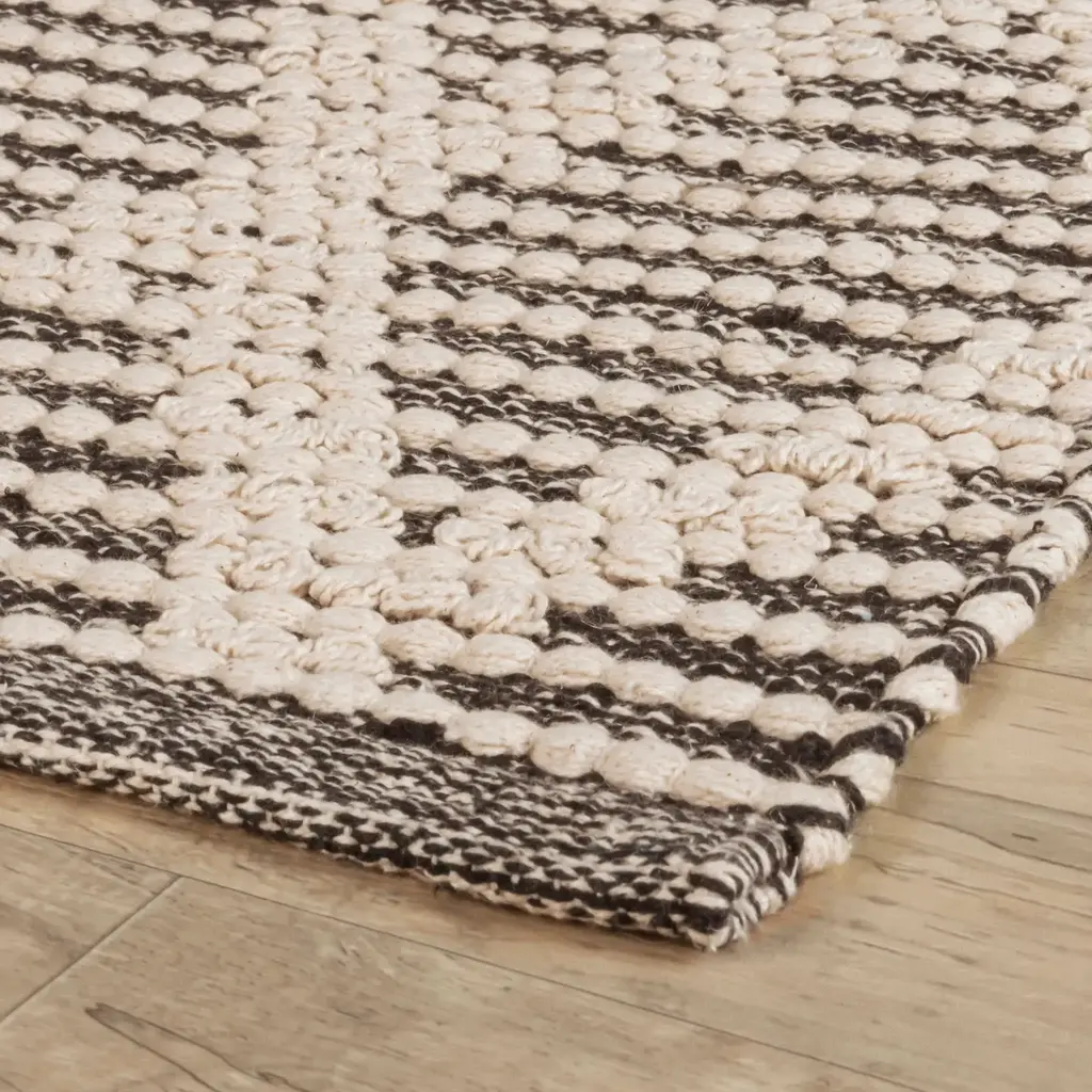 Textured Diamond Handwoven Cotton Rug | Black/ivory - 6' X 9'