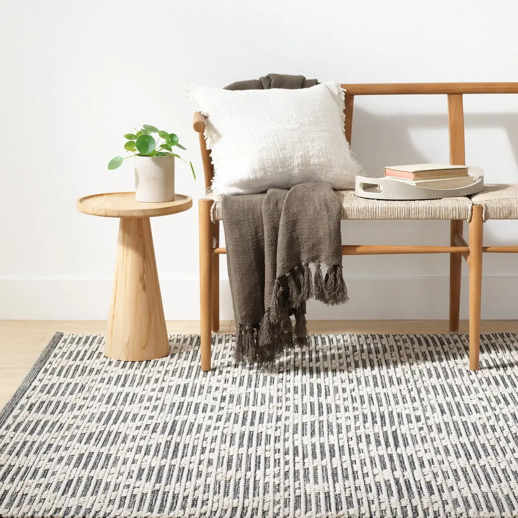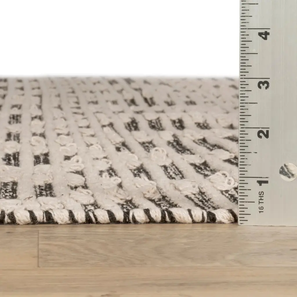 Textured Diamond Handwoven Cotton Rug | Black/ivory