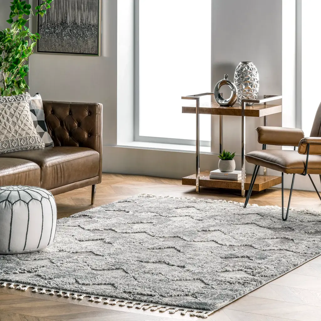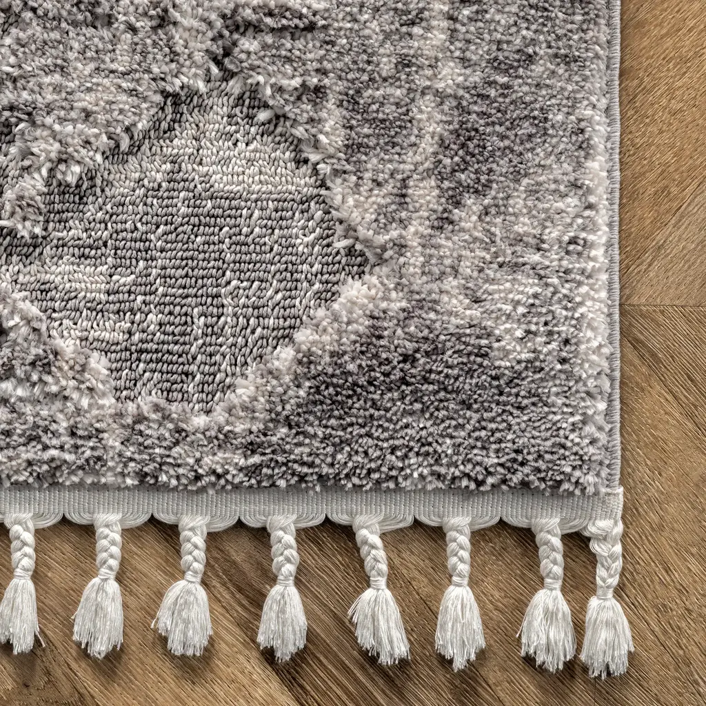 Textured Herringbone Tasseled Rug | Light Grey - 4' X 6'