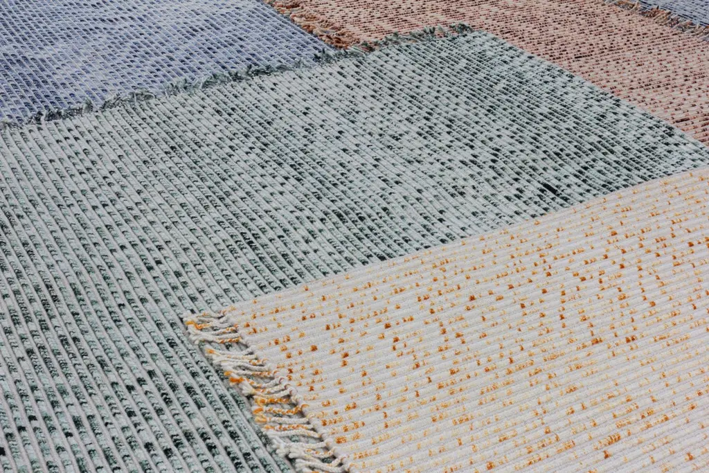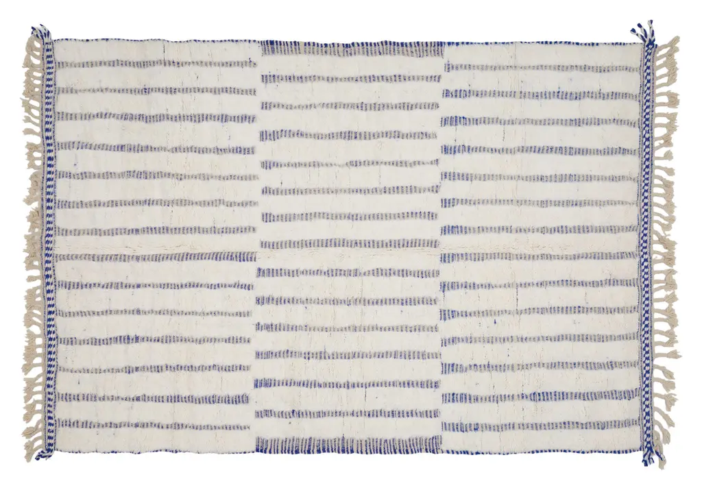 Textured Modern Lines Blue Handmade Rug In Himalayan Wool By Philippe Malouin