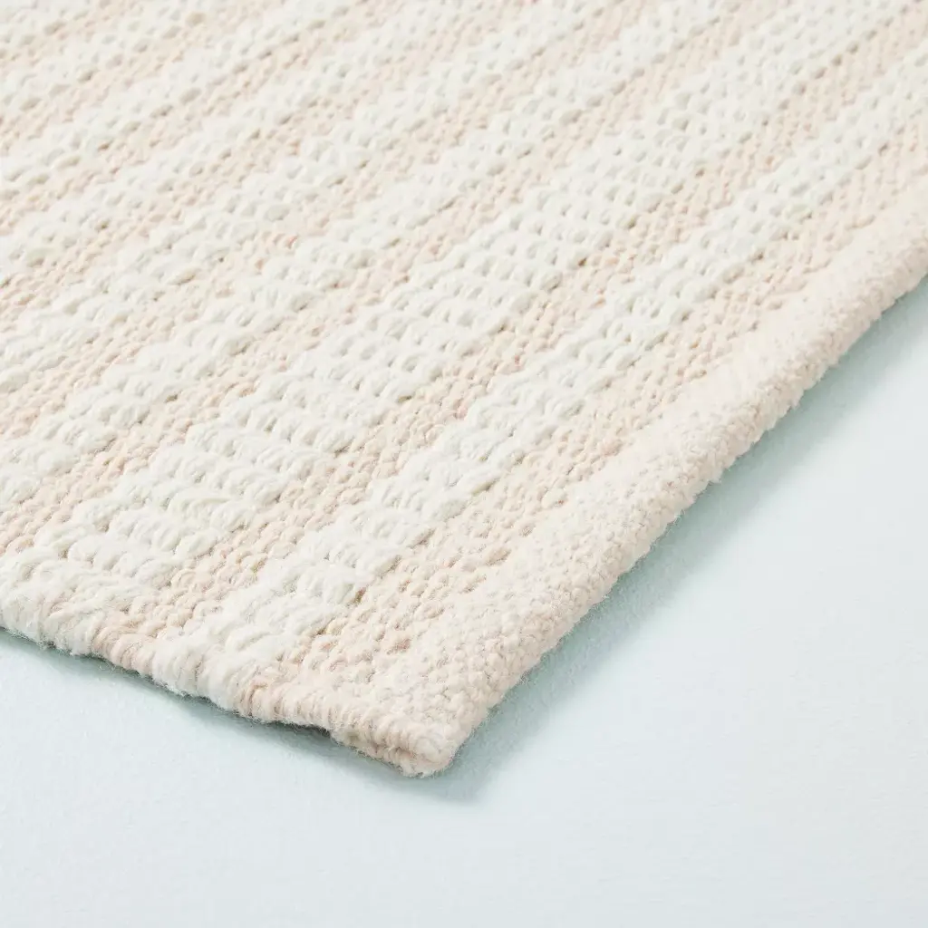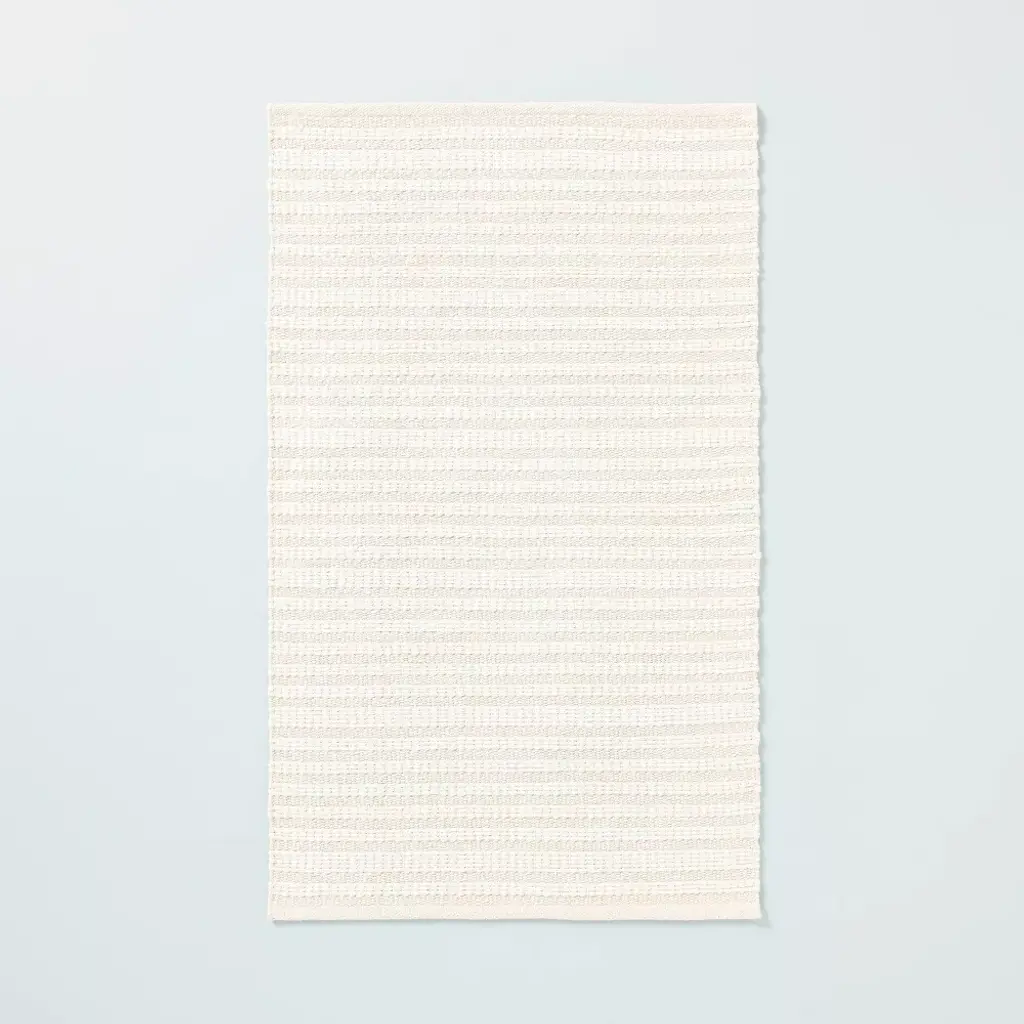The Textured Stripe Indoor/Outdoor Woven Area Rug from Hearth & Hand™ with Magnolia makes a stylish addition to any space in your home. This handmade accent rug features a textured striped pattern that is sure to elevate your space while easily matching with a variety of settings. Designed with a flat pile height that is easy to clean and maintain, this weather-resistant woven rug is suitable for placement in even high-traffic areas like your entryway or patio. Hearth & Hand™ with Magnolia: Gather • Create • Enjoy