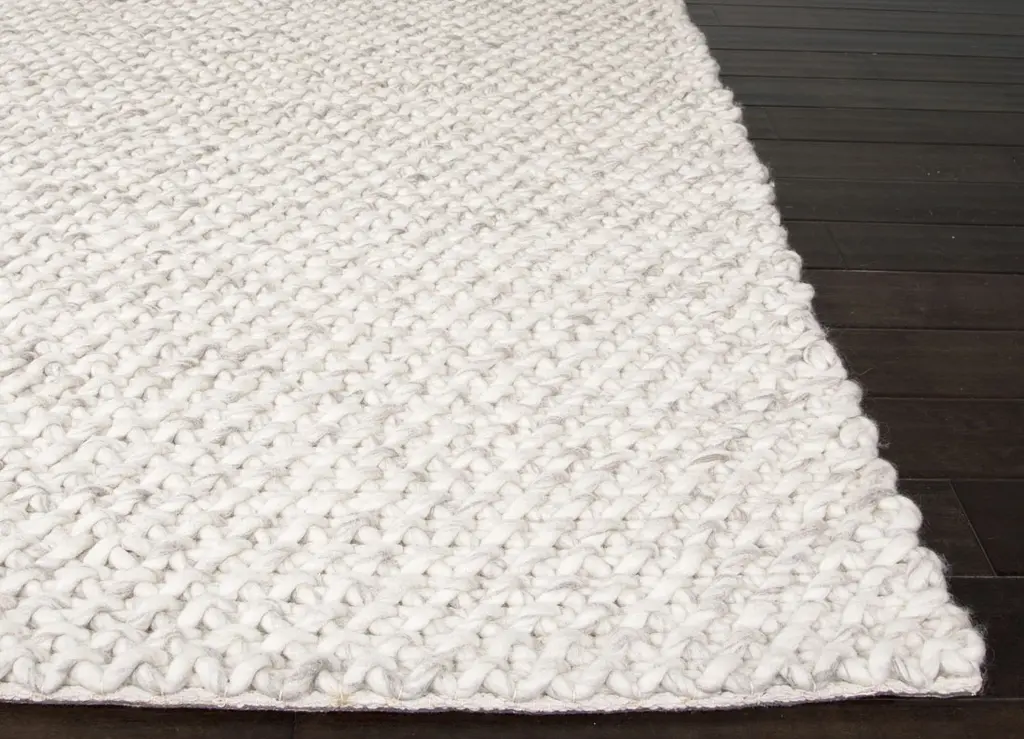 Many different methods of construction make up this chunky textural rug. Blanket your floor with this natural un-dyed wool rug for cozy comfort and organic style.
