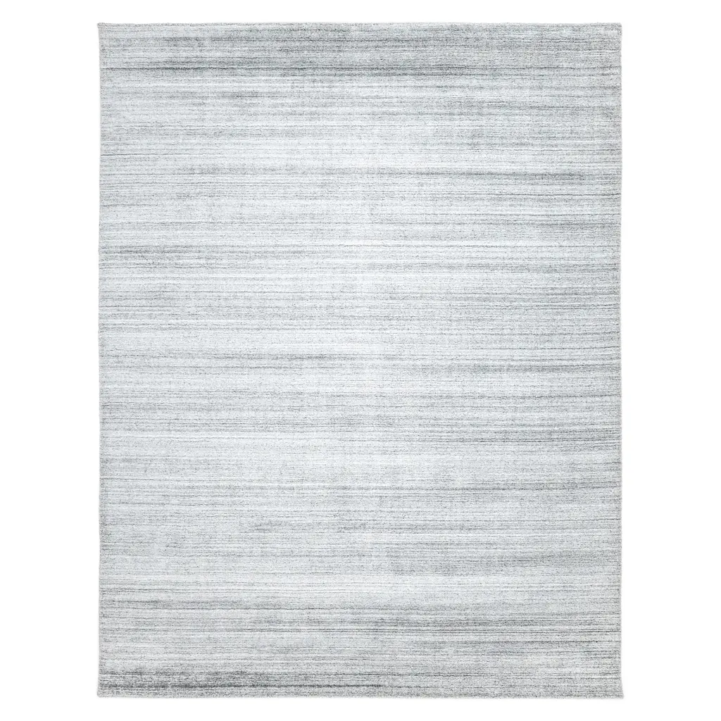 The Textured Wool Art Silk Blend Rug is a 3' x 5' area rug designed to complement various interior styles with its neutral ivory color and distinct texture. This piece combines natural and synthetic fibers for a balanced aesthetic and feel. Crafted with a blend of 60% wool, 30% art silk, and 10% cotton, the rug offers a combination of durability and soft luster. Wool provides resilience, while art silk contributes a subtle sheen and smooth touch. The cotton content adds structural integrity to the weave. Its construction falls under the "Solids + Textures" type, characterized by subtle horizontal striations that create visual depth without introducing a complex pattern. Measuring 3 feet by 5 feet, this rug is suitable for placement in smaller areas such as entryways, hallways, or alongside a bed. It can also define a zone within an open-plan living space or serve as an accent rug in a den or home office. The ivory color offers a versatile foundation that pairs well with both warm and cool color palettes, enhancing a room's decor. This rug is produced in India, a region known for its tradition of textile craftsmanship. Its composition and design make it a functional and visually appealing addition to contemporary and transitional settings.