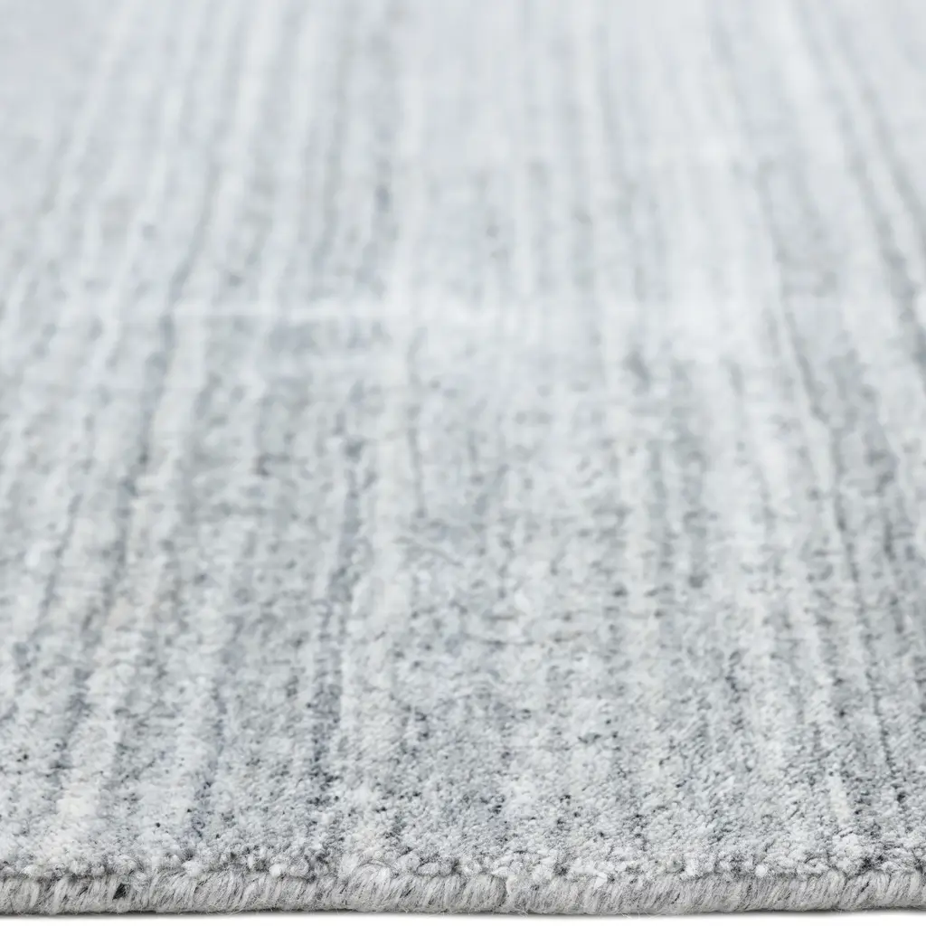 The Textured Wool Art Silk Blend Rug is a 3' x 5' area rug designed to complement various interior styles with its neutral ivory color and distinct texture. This piece combines natural and synthetic fibers for a balanced aesthetic and feel. Crafted with a blend of 60% wool, 30% art silk, and 10% cotton, the rug offers a combination of durability and soft luster. Wool provides resilience, while art silk contributes a subtle sheen and smooth touch. The cotton content adds structural integrity to the weave. Its construction falls under the "Solids + Textures" type, characterized by subtle horizontal striations that create visual depth without introducing a complex pattern. Measuring 3 feet by 5 feet, this rug is suitable for placement in smaller areas such as entryways, hallways, or alongside a bed. It can also define a zone within an open-plan living space or serve as an accent rug in a den or home office. The ivory color offers a versatile foundation that pairs well with both warm and cool color palettes, enhancing a room's decor. This rug is produced in India, a region known for its tradition of textile craftsmanship. Its composition and design make it a functional and visually appealing addition to contemporary and transitional settings.