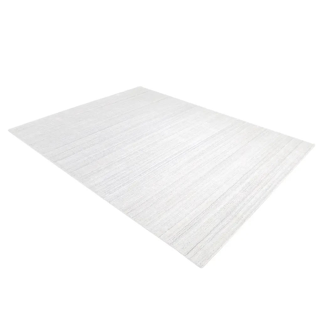 The Textured Wool Art Silk Blend Rug is a 3' x 5' area rug designed to complement various interior styles with its neutral ivory color and distinct texture. This piece combines natural and synthetic fibers for a balanced aesthetic and feel. Crafted with a blend of 60% wool, 30% art silk, and 10% cotton, the rug offers a combination of durability and soft luster. Wool provides resilience, while art silk contributes a subtle sheen and smooth touch. The cotton content adds structural integrity to the weave. Its construction falls under the "Solids + Textures" type, characterized by subtle horizontal striations that create visual depth without introducing a complex pattern. Measuring 3 feet by 5 feet, this rug is suitable for placement in smaller areas such as entryways, hallways, or alongside a bed. It can also define a zone within an open-plan living space or serve as an accent rug in a den or home office. The ivory color offers a versatile foundation that pairs well with both warm and cool color palettes, enhancing a room's decor. This rug is produced in India, a region known for its tradition of textile craftsmanship. Its composition and design make it a functional and visually appealing addition to contemporary and transitional settings.