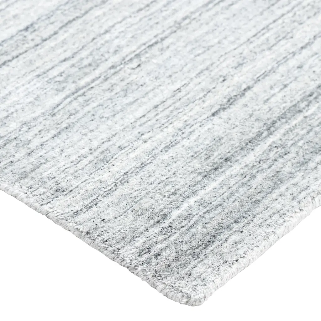 The Textured Wool Art Silk Blend Rug is a 3' x 5' area rug designed to complement various interior styles with its neutral ivory color and distinct texture. This piece combines natural and synthetic fibers for a balanced aesthetic and feel. Crafted with a blend of 60% wool, 30% art silk, and 10% cotton, the rug offers a combination of durability and soft luster. Wool provides resilience, while art silk contributes a subtle sheen and smooth touch. The cotton content adds structural integrity to the weave. Its construction falls under the "Solids + Textures" type, characterized by subtle horizontal striations that create visual depth without introducing a complex pattern. Measuring 3 feet by 5 feet, this rug is suitable for placement in smaller areas such as entryways, hallways, or alongside a bed. It can also define a zone within an open-plan living space or serve as an accent rug in a den or home office. The ivory color offers a versatile foundation that pairs well with both warm and cool color palettes, enhancing a room's decor. This rug is produced in India, a region known for its tradition of textile craftsmanship. Its composition and design make it a functional and visually appealing addition to contemporary and transitional settings.