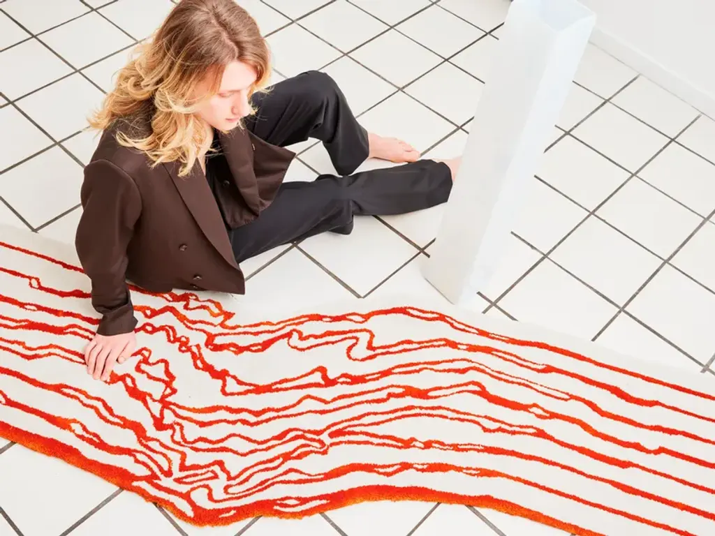 Handtufted by expert craftsmen, TFIL 05 - FIRE LINE is entirely composed of New Zealand Wool and Tencel. Designed by PLACéE, it is ispired by the theme of the volcano and the deformation of surfaces. It belongs to the class Cfl-s1 fire retardant. It can be customized in sizes and colors.Collection with unconventional shapes that interprets in a pop and bichromatic key the change of the surfaces, after the volcanic force explodes in a chaotic river of magma and lapilli. The texture of the carpets seems to melt in a design with a melted effect characterized by decomposed and shaped lines. In New Zealand Wool and Tencel, The Floor Is Lava borrows its bright and intense colors from nature and from the gaming and digital world.